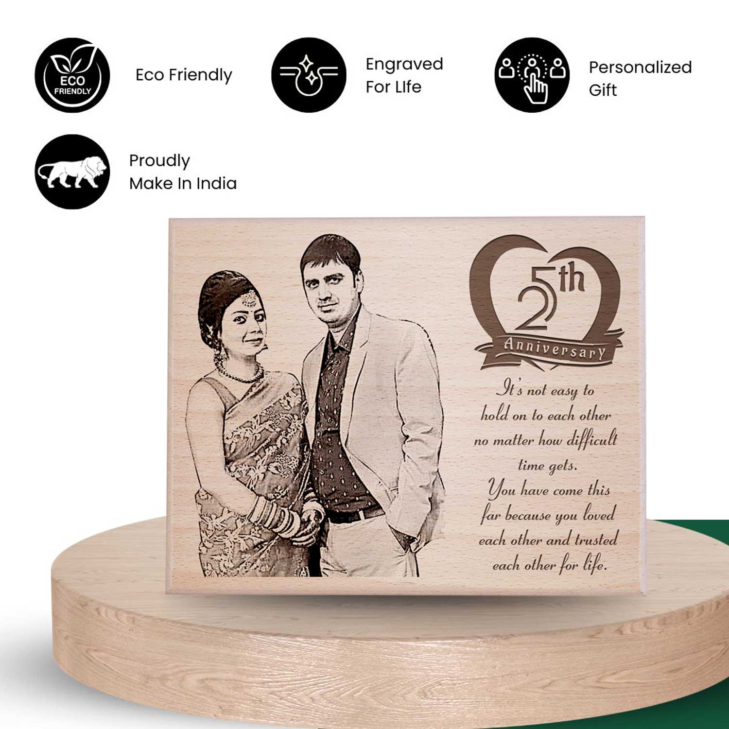 Celebrate the remarkable milestone of a quarter-century of love with our Happy 25th Wedding Anniversary Wooden Photo Frame. One of the standout features of this photo frame is its customization option that makes it a unique and heartfelt 25th wedding anniversary gift ideas for couples. The engraving is meticulously done, ensuring a flawless and refined finish that adds a personal touch to your gift. Celebrate the joy of your silver wedding anniversary with a gift that speaks volumes about your love.