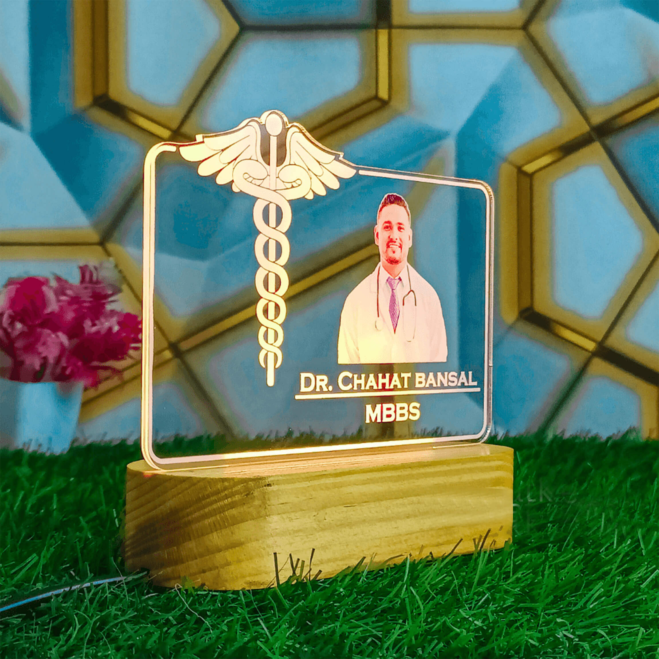 Shop this personalized 3D illusion photo frame gift for doctors . It’s a perfect gifts for doctors, ideal for clinic decoration items for doctors. Surprise the doctors in your life with this unique and thoughtful present and the size will be 6 Inch and the color of lamp will be yellowish.