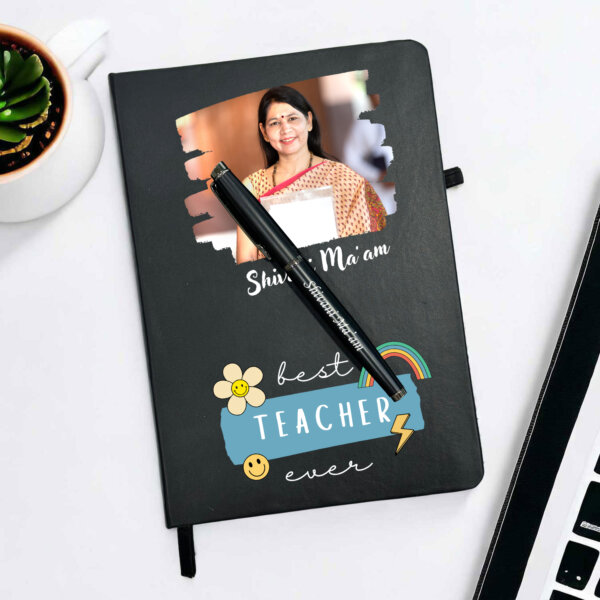 This set includes a finely crafted black diary and a matching black pen. The diary features a customizable option, allowing you to add a cherished photo & the teacher’s name. The black pen complements the diary beautifully, creating a harmonious pairing that exudes sophistication.