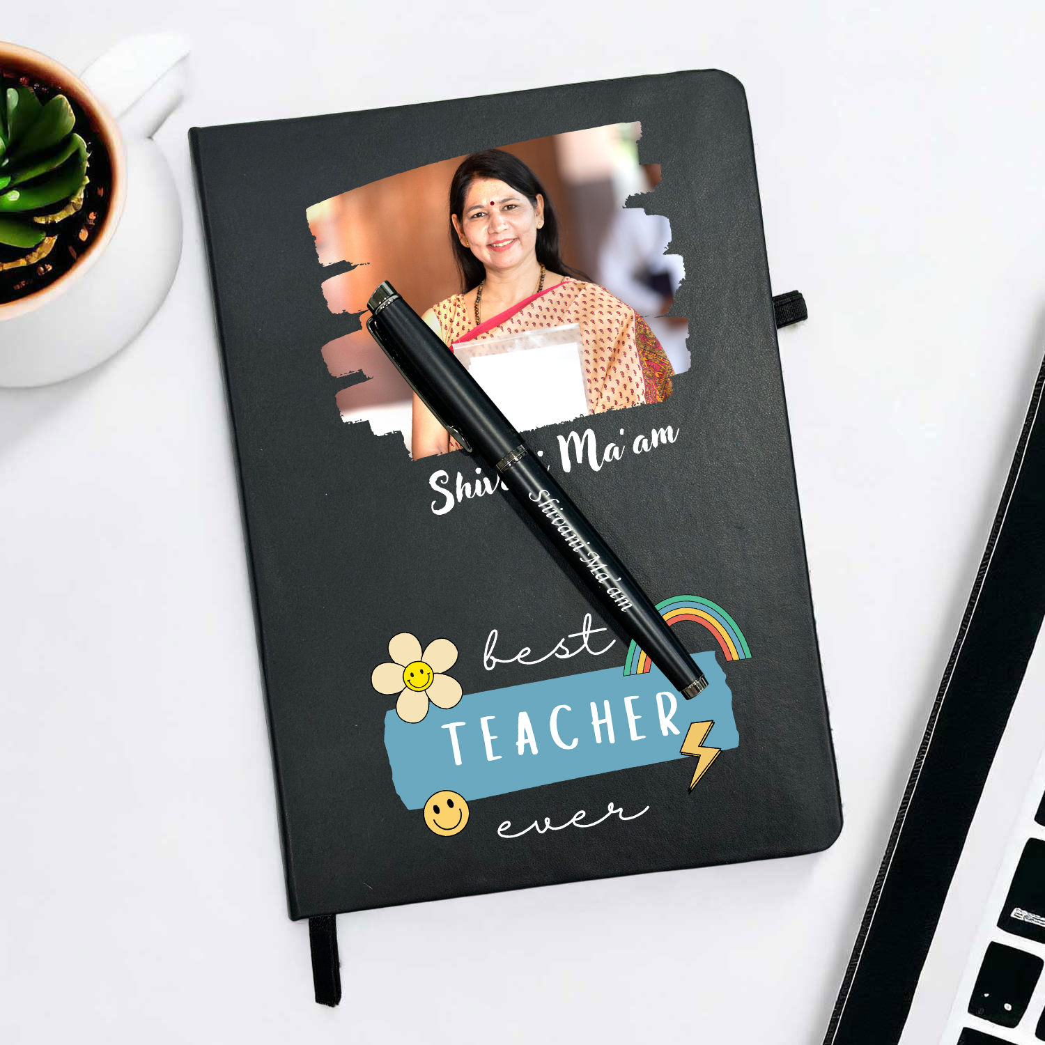 Personalized Black Diary With Customize Pen For Best Female Teacher Ever