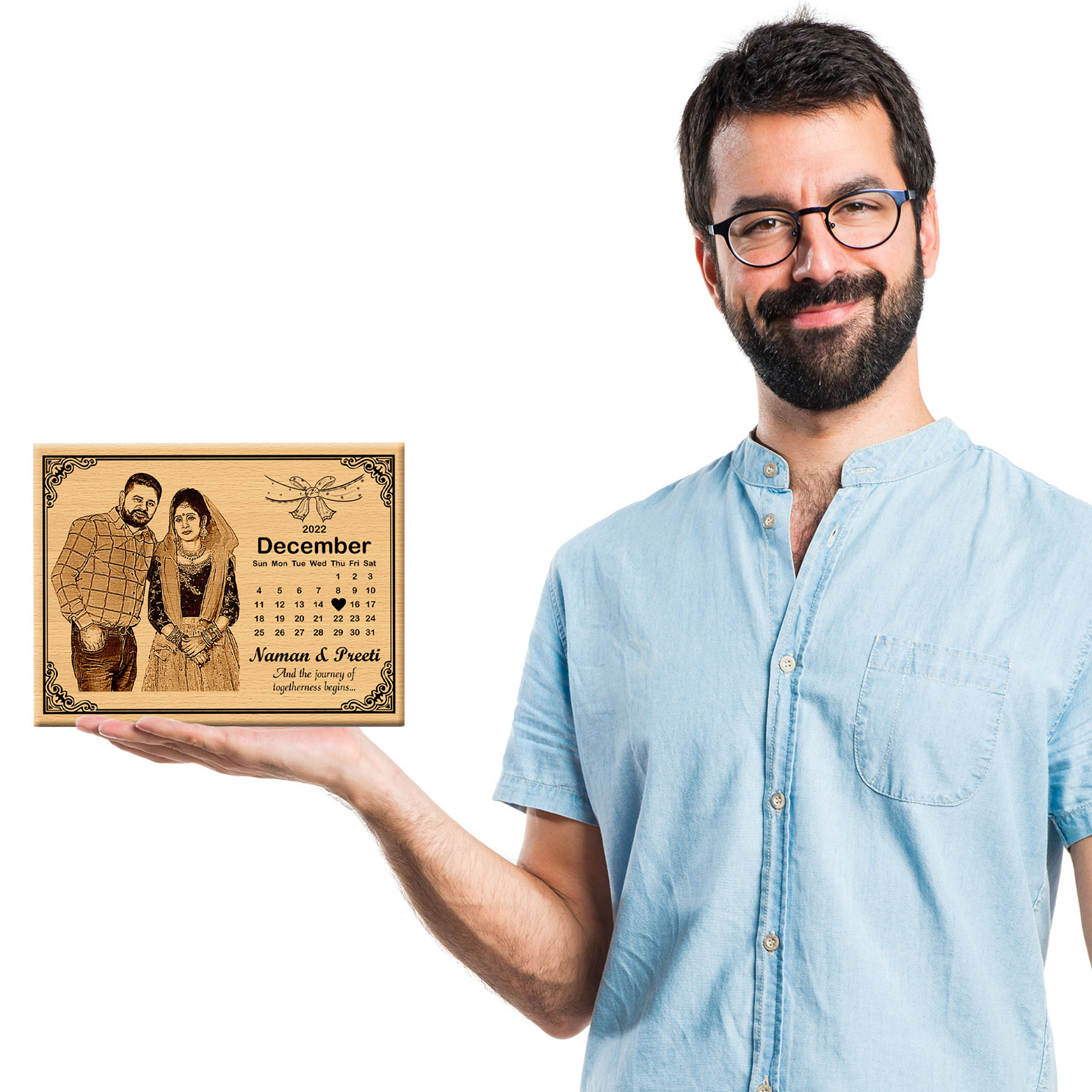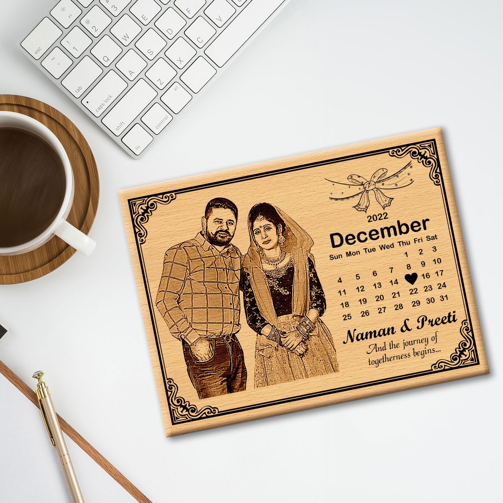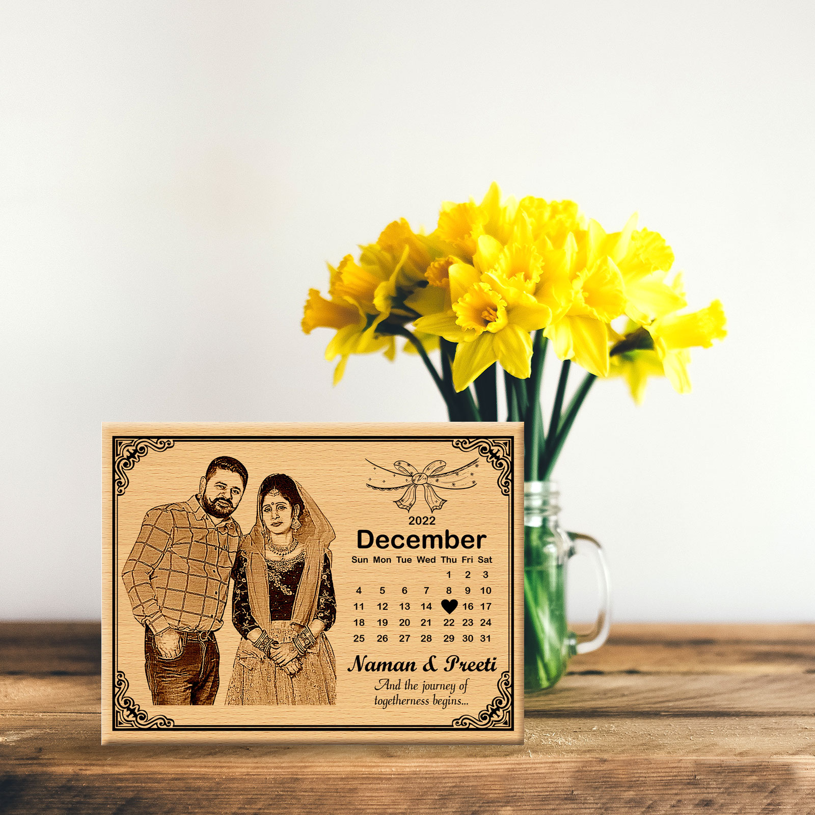 Celebrate your love with our Personalized Calendar Photo Frame for Wedding Anniversary, featuring customizable dates and a beautiful design.