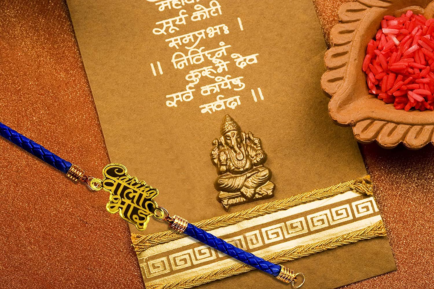 - Designer Rakhi : This Raksha Bandhan Rakhi comes with Free Roli and Chawal, That completes the Religious day celebration with your Brother.