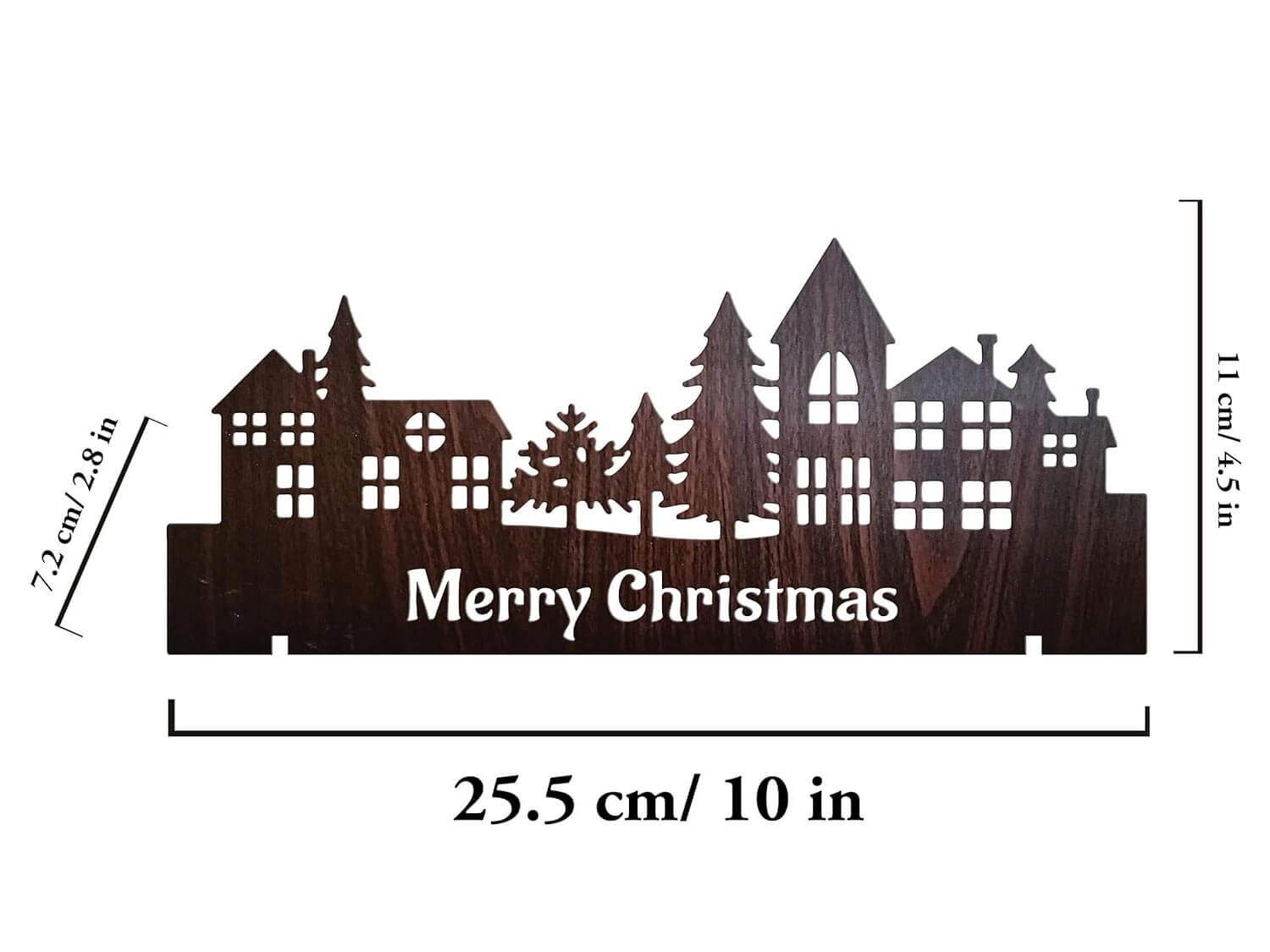 Christmas ornament was laser cut from high quality MDF plywood, has thickness of 4mm, which is strong enough to stand.
