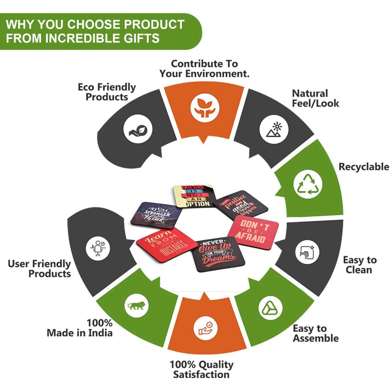 Crafted from high-quality materials like durable MDF or wood these coasters are lightweight yet sturdy, ensuring long-lasting use. The smooth surface finish not only resists spills and heat but also adds a touch of sophistication to your coffee table, work desk, dining table, or kitchen counter. Easy to wipe clean, they are low maintenance and perfect for busy households or workspaces.