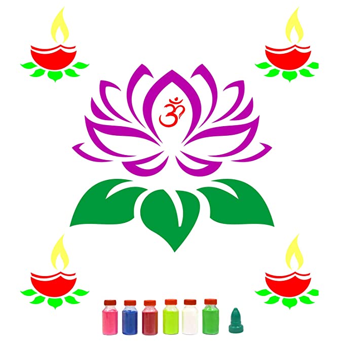 Rangoli stencils are made from MDF, laser cut and best for diwali and other festival. Available in different designs. Free colors, Free diya. Best for outdoor and indoor.