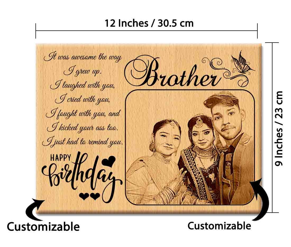 - WOODEN CARVED PHOTO FRAME : This wooden photo frame for birthday is an engraved personalized gifts, that can be customized with photo and text message. Great option as a gifts for big brothers birthday or little bro bday.