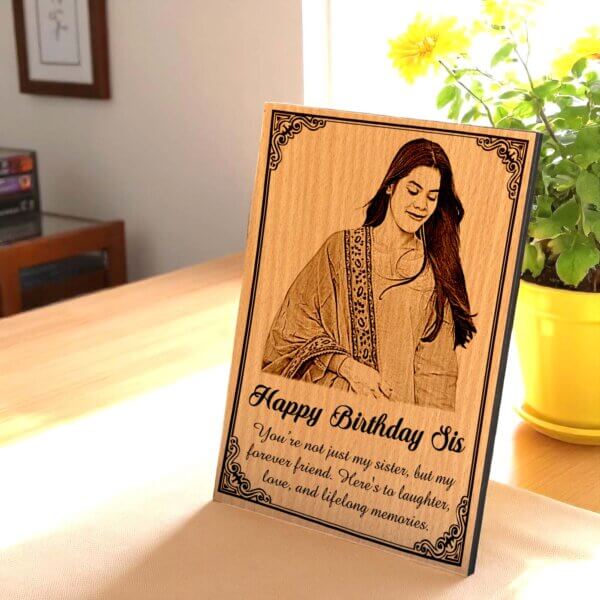 Birthday Frame For Sister – Personalized Engraved Wooden Frame designed specifically for sister’s birthday celebrations.