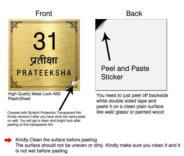 HIGH QUALITY OUTDOOR WATERPROOF MATERIAL – The Material is imported high quality ABS Plastic, that will last very long in outdoor of your house too. Make sure you follow instructions as mentioned in images while sticking the nameplate.