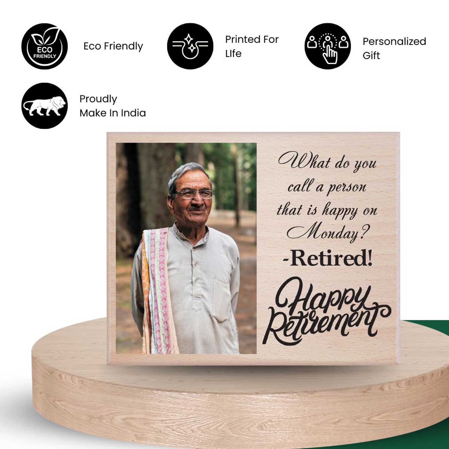 Celebrate retirement with our Customized Wooden Printed Retirement Photo Frame, crafted from premium beech wood in a 10×8 inch size.