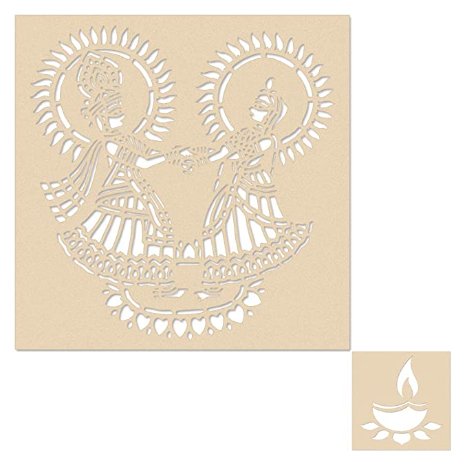 Rangoli stencils are laser cut from MDF. It is a best product for diwali and other festival. Available in different designs and sizes. It contains free colors, free diya to help you make rangoli. Also, it is best for outdoor and indoor. Rangoli stencils are best product for diwali and other festival.