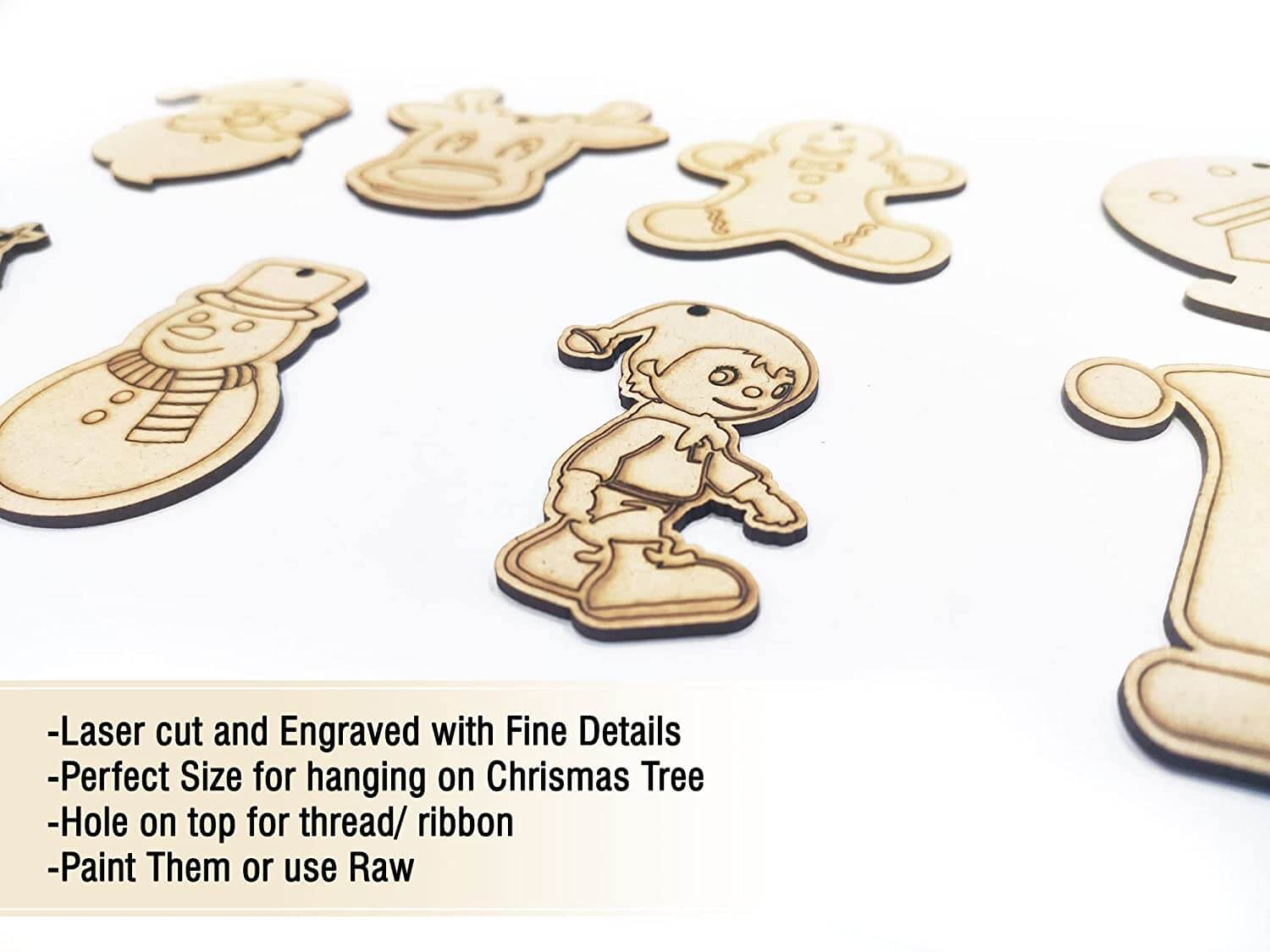 - Size and Material – Each ornament is of 7 cm height and made of high quality imported Pine MDF wood and perfectly laser cut and with fine details.