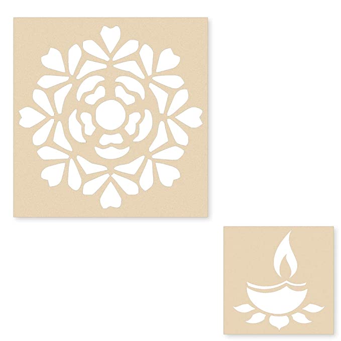Available in different designs, free colors, free diya, these stencils are the best thing to ever have happened to the festival of colours. Rangoli stencils are laser cut from MDF. It is a best product for diwali and other festival. Available in different designs and sizes. It contains free colors, free diya to help you make rangoli. Also, it is best for outdoor and indoor. Rangoli stencils are best product for diwali and other festival.