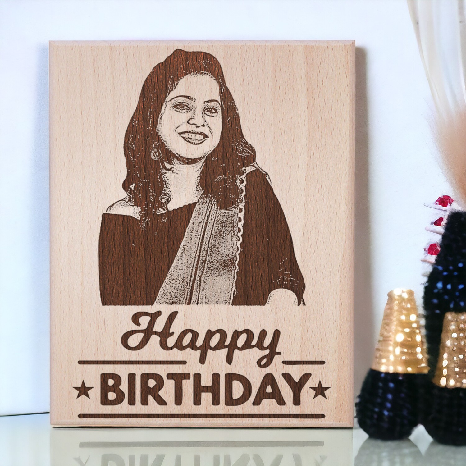 Elevate birthday gifting with our Personalized Wooden Engraved Birthday Frame With Picture