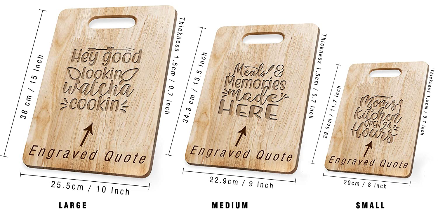 Engraved Chopping Board Set for Kitchen Gifts for Her/Him (Wood, Set of 3 Sizes, Combo)