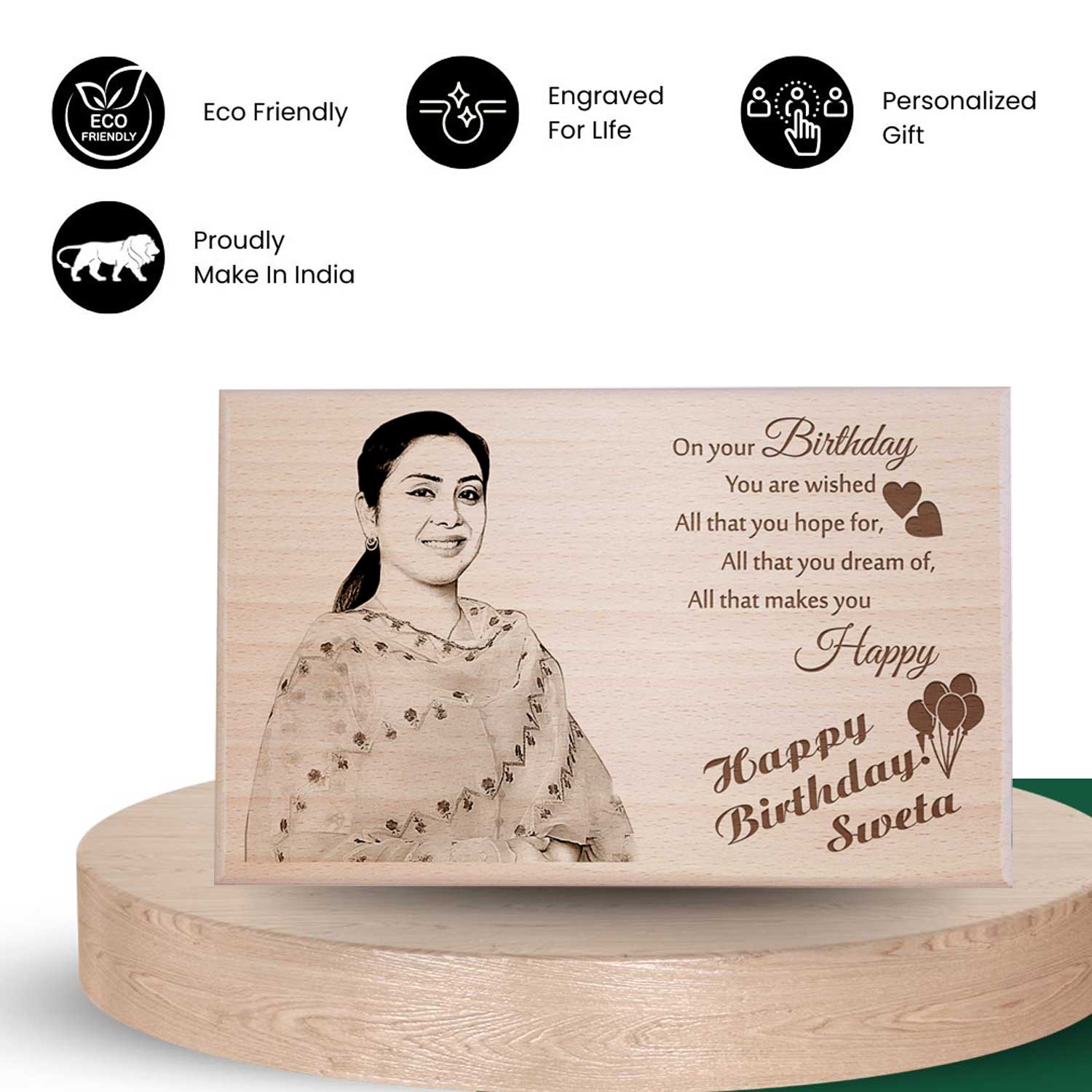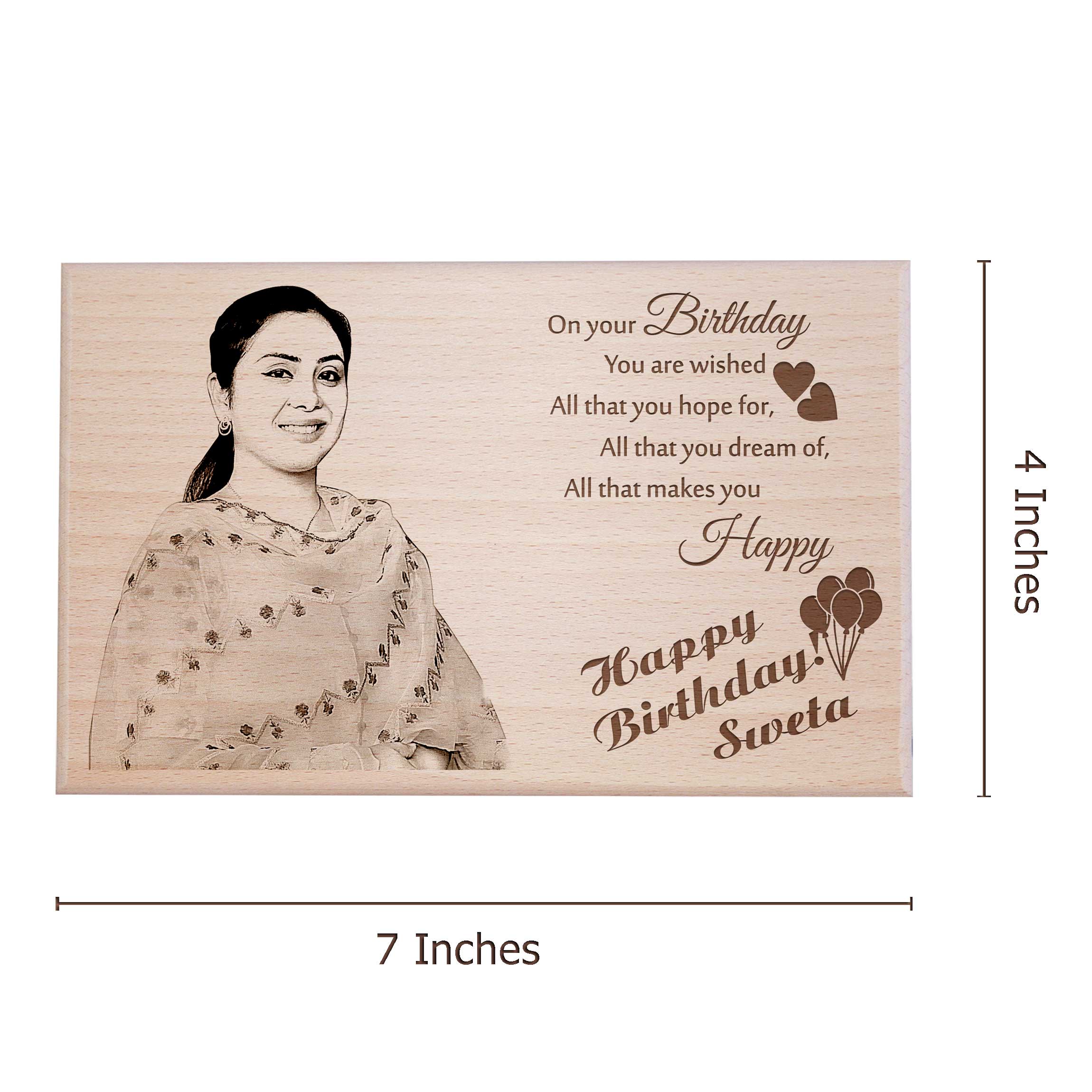 Personalized Engraved Wooden Photo Plaque Birthday Gift for Him or Her (7×4 in)