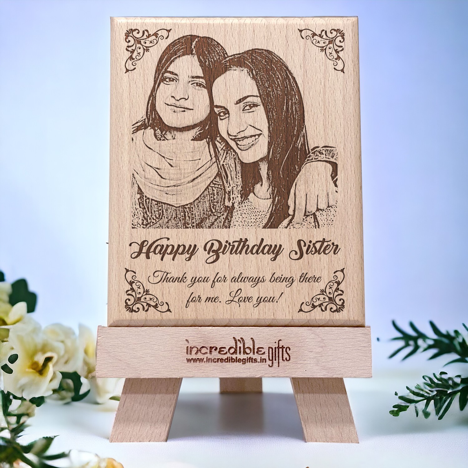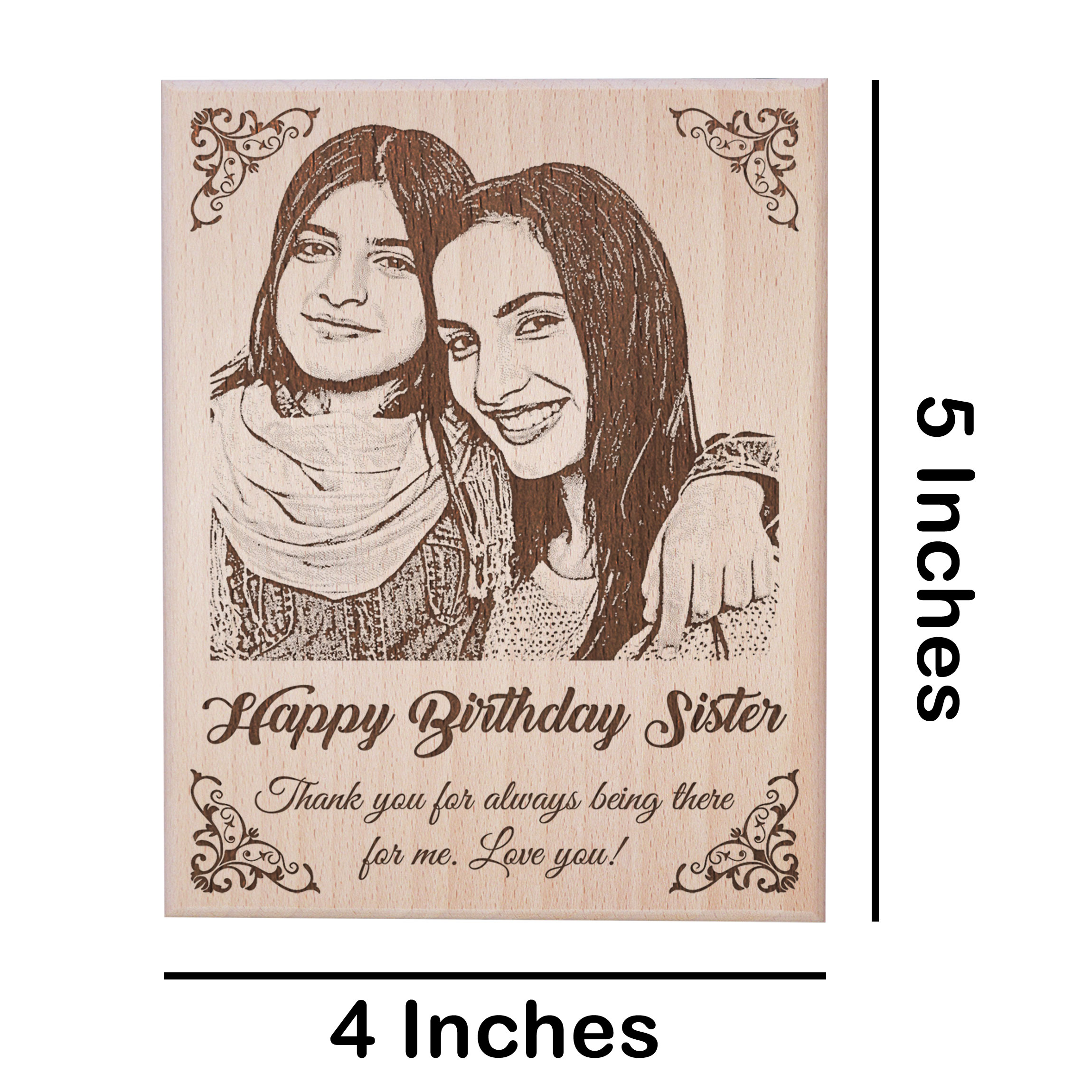Birthday Frame For Sister – Personalized Engraved Wooden Frame designed specifically for sister’s birthday celebrations.