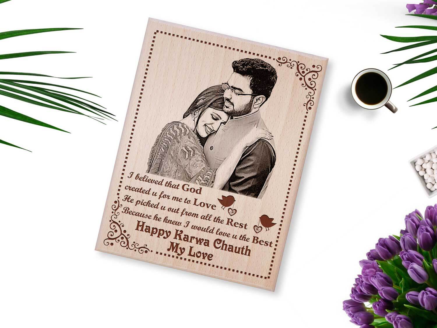 Custom Engraved Photo Frame Karwachauth Gift For Beautiful Wife