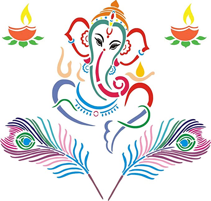 Feather with Ganesha Rangoli Stencils for Floor Combo