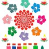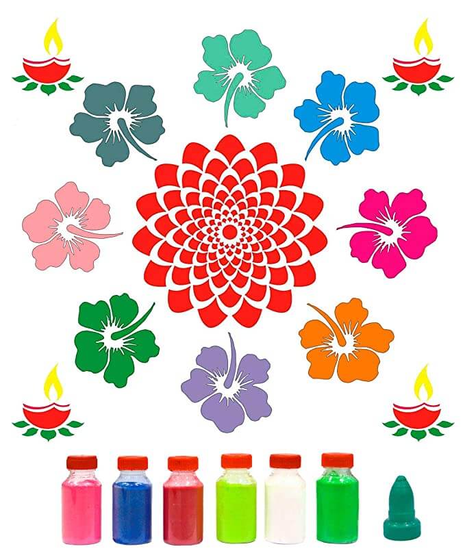 Flower With Diya Rangoli Stencils with Six Rangoli Colors