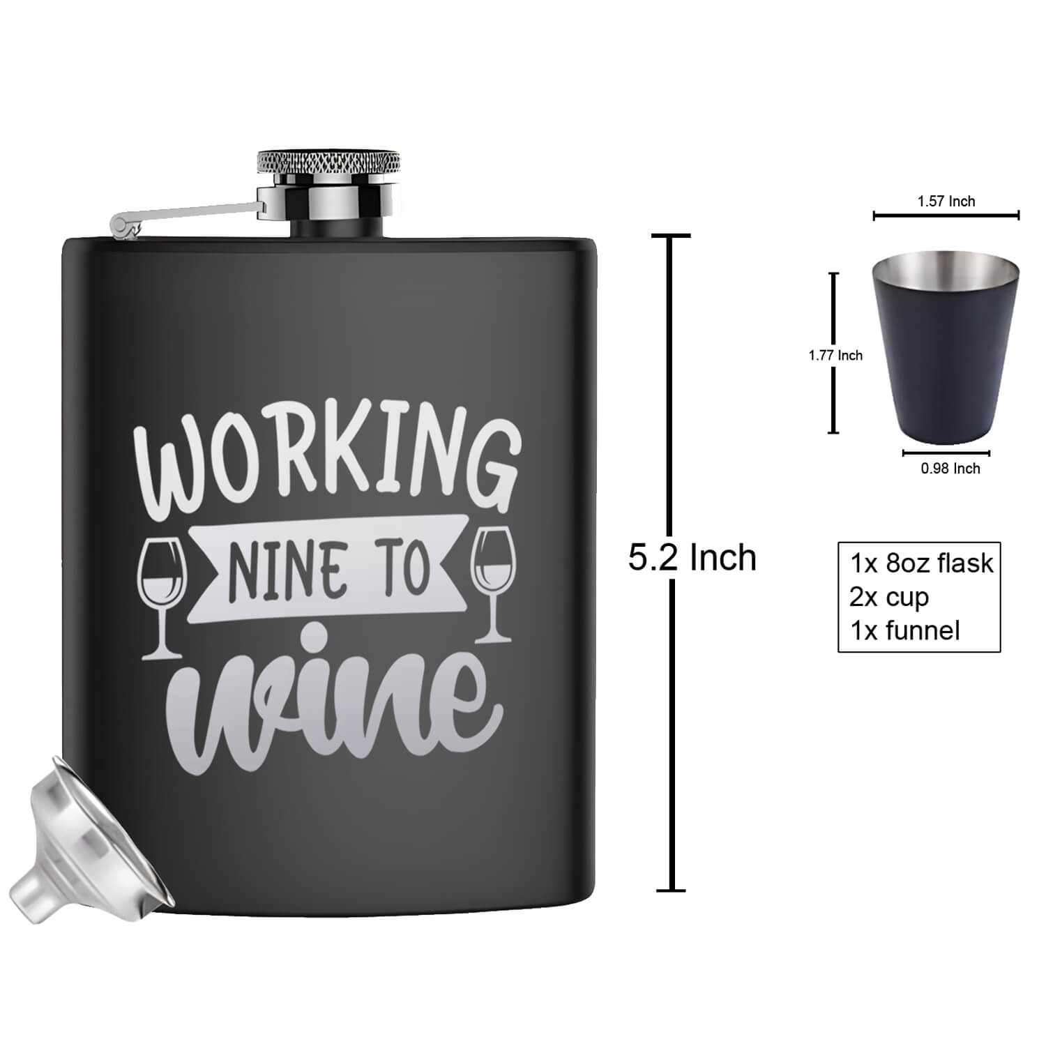 Stand out in your gift-giving endeavors with our Classic Engraved Hip Flask: Working 9 to Wine Edition. Whether you’re looking to add a dash of humor to your gift or simply want to impress with a timeless accessory, this flask is guaranteed to make a lasting impression. Shop now and give the gift of laughter and elegance.