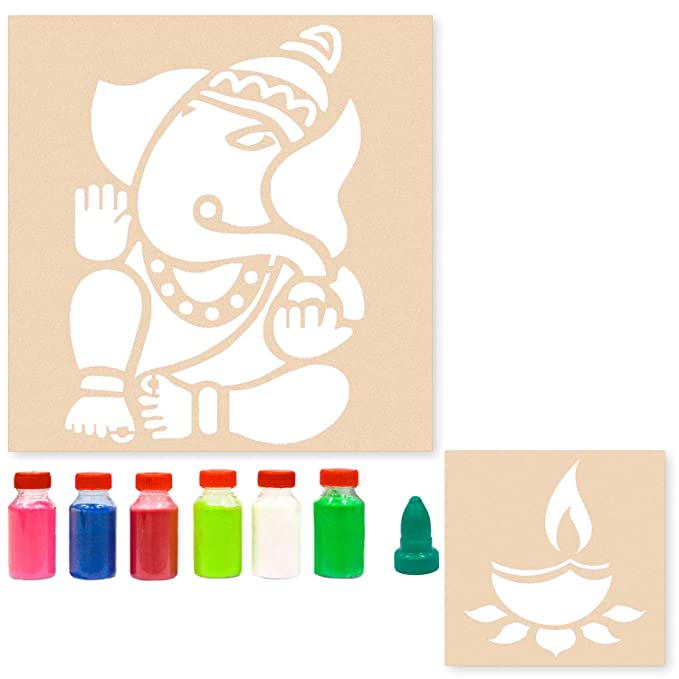 Combo of Rangoli Stencils for Diwali Floor Decoration Items with 6 Colors (Set of 5)