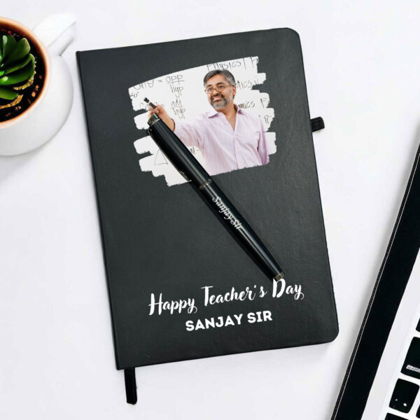 This set includes a finely crafted black diary and a matching black pen. The diary features a customizable option, allowing you to add a cherished photo & the teacher’s name. The black pen complements the diary beautifully, creating a harmonious pairing that exudes sophistication.