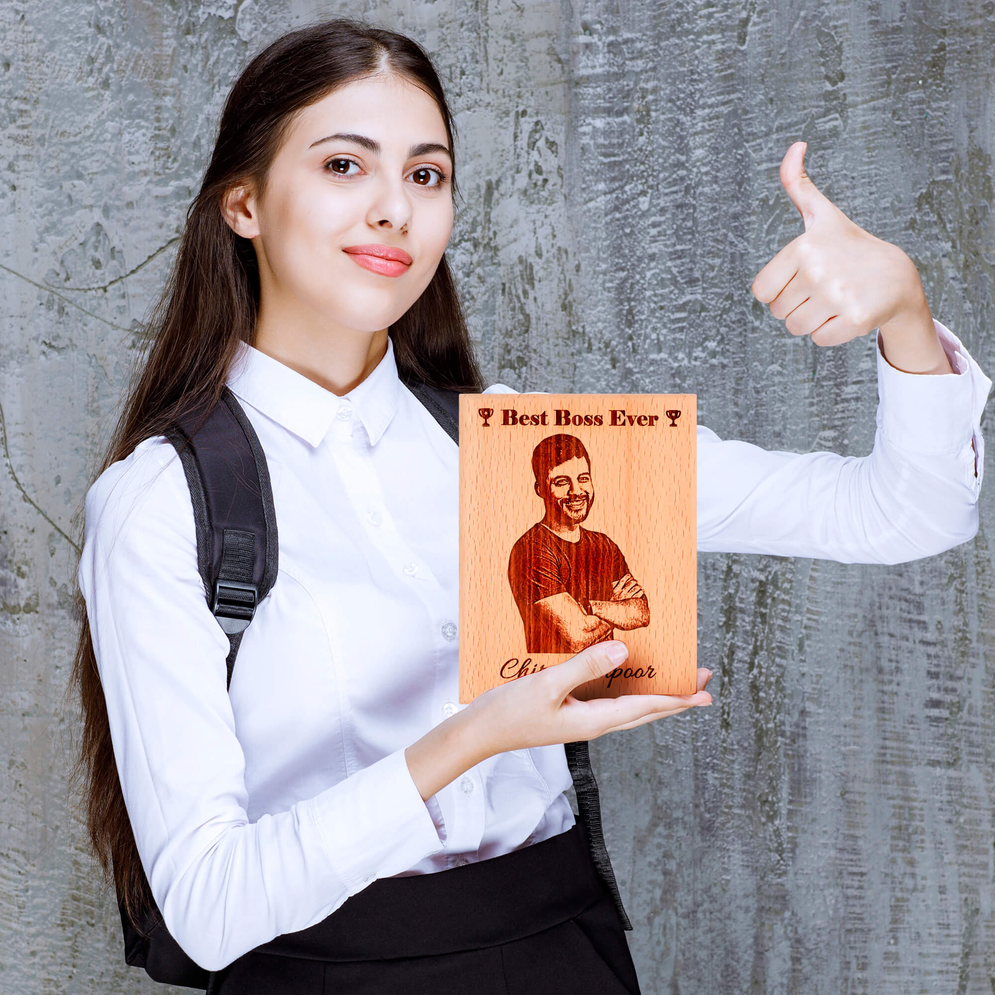 Gift for Boss – Personalized Engraved Wooden Photo Plaque