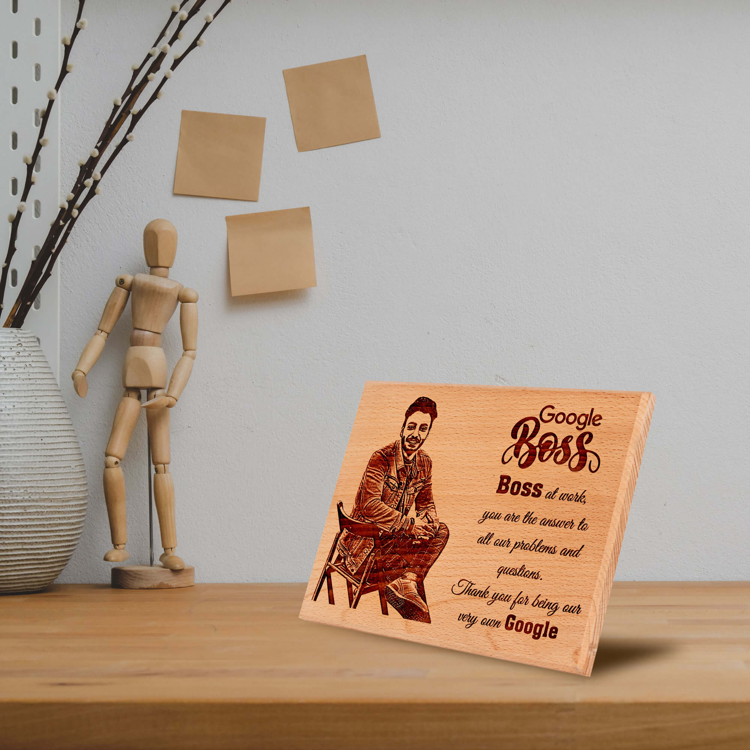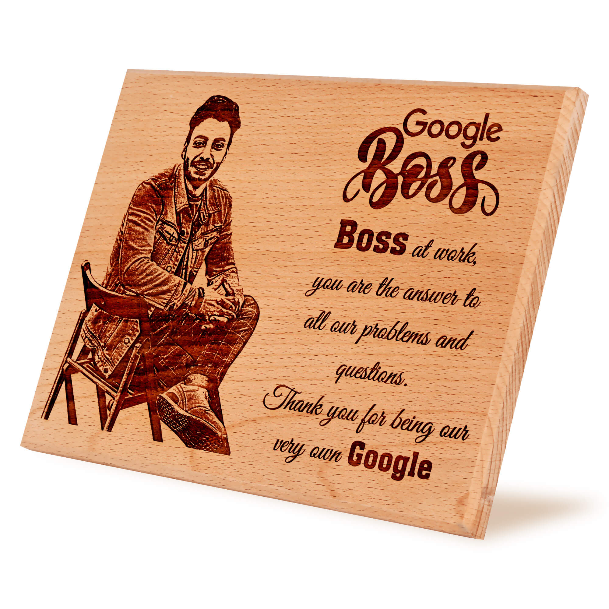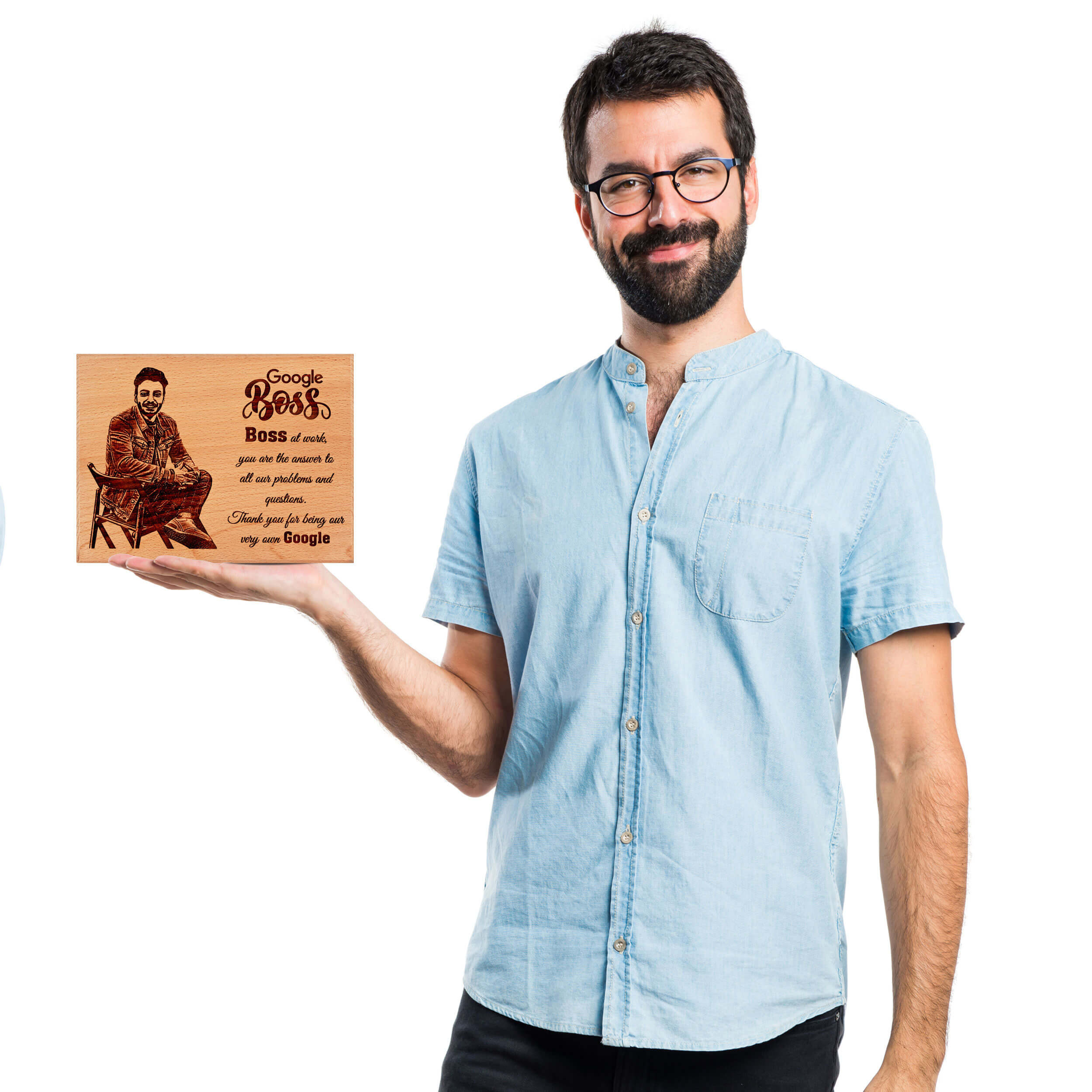 A Unique Personalized Gift for manager. This Wooden Photo Frame is a great gift idea for the Boss or Manager. Photo and text will be engraved for life. You can touch and feel the depth of art work on wood.