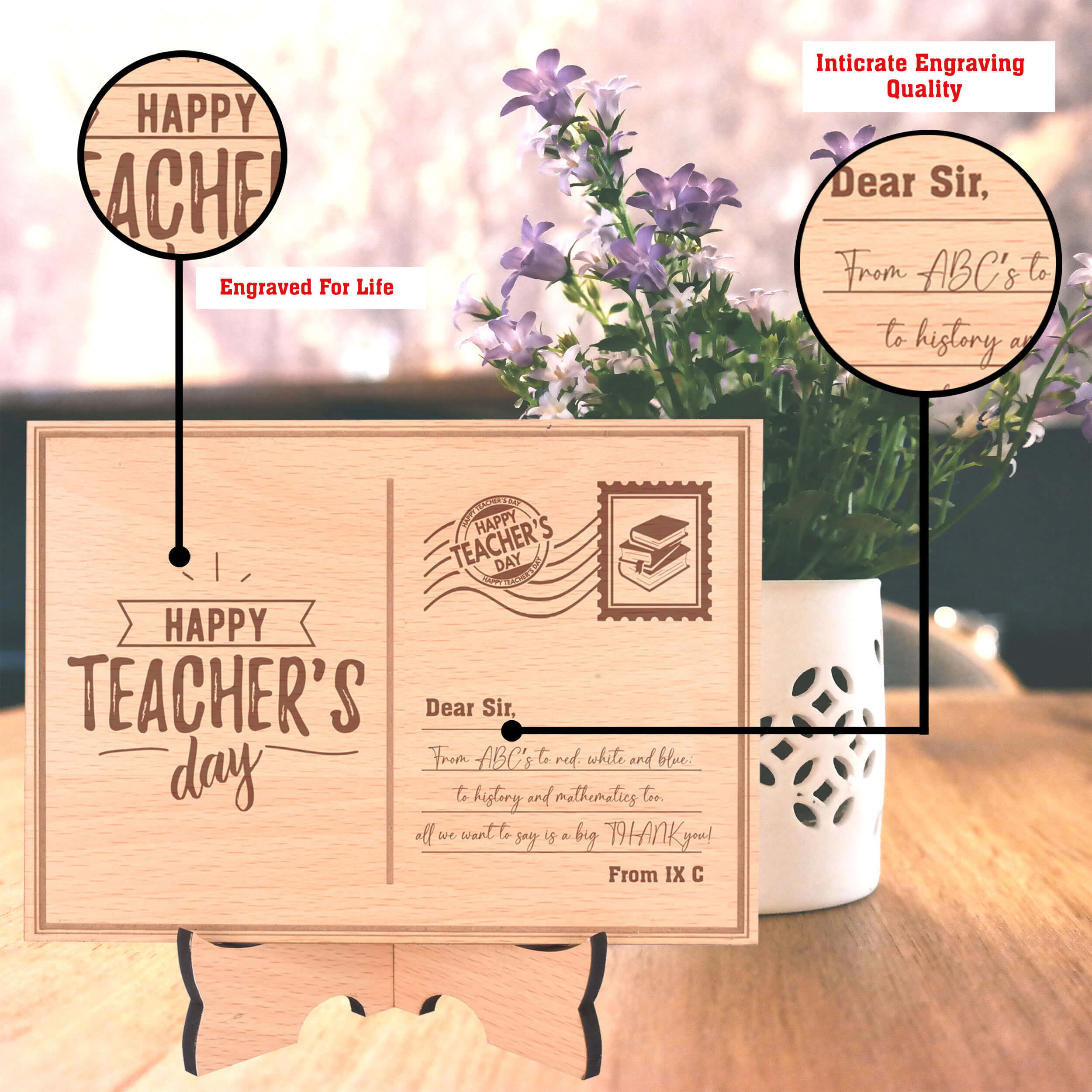 Personalized Wooden Postcard For Teacher With Wood Stand