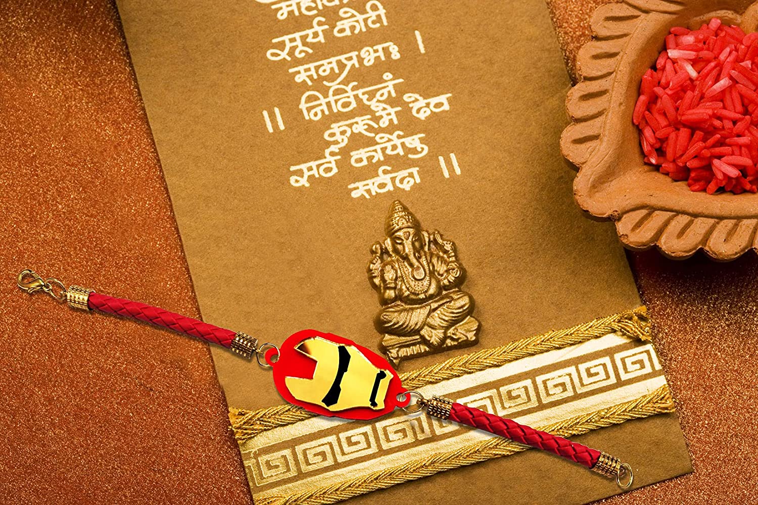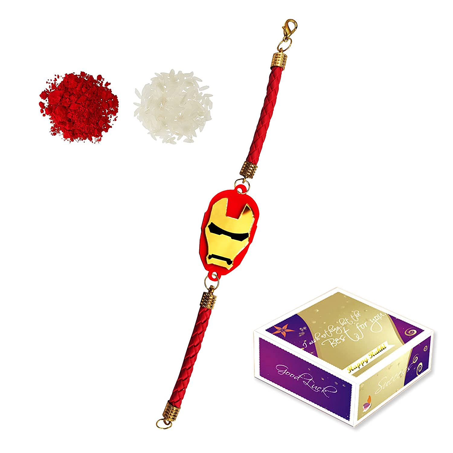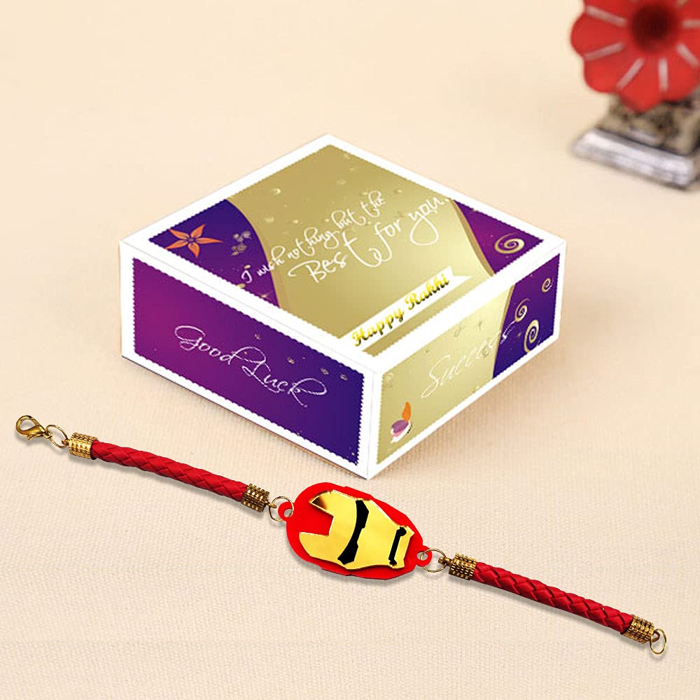 Iron Man Bracelet Incredible Rakhi with Roli Chawal – (Red-Gold Acrylic)