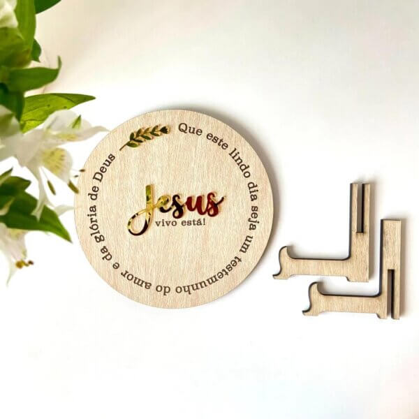 Enhance your Christmas décor with this elegant wooden Jesus frame featuring golden accents and the inspiring message “Jesus Lives.”