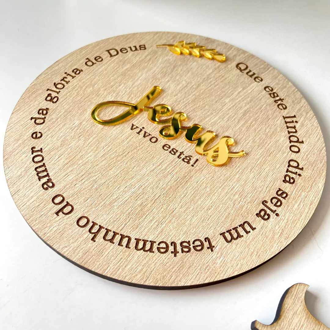 Enhance your Christmas décor with this elegant wooden Jesus frame featuring golden accents and the inspiring message “Jesus Lives.”