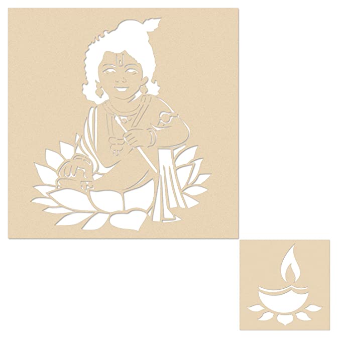Krishan Rangoli Stencils Design for Floor Decoration with Diya