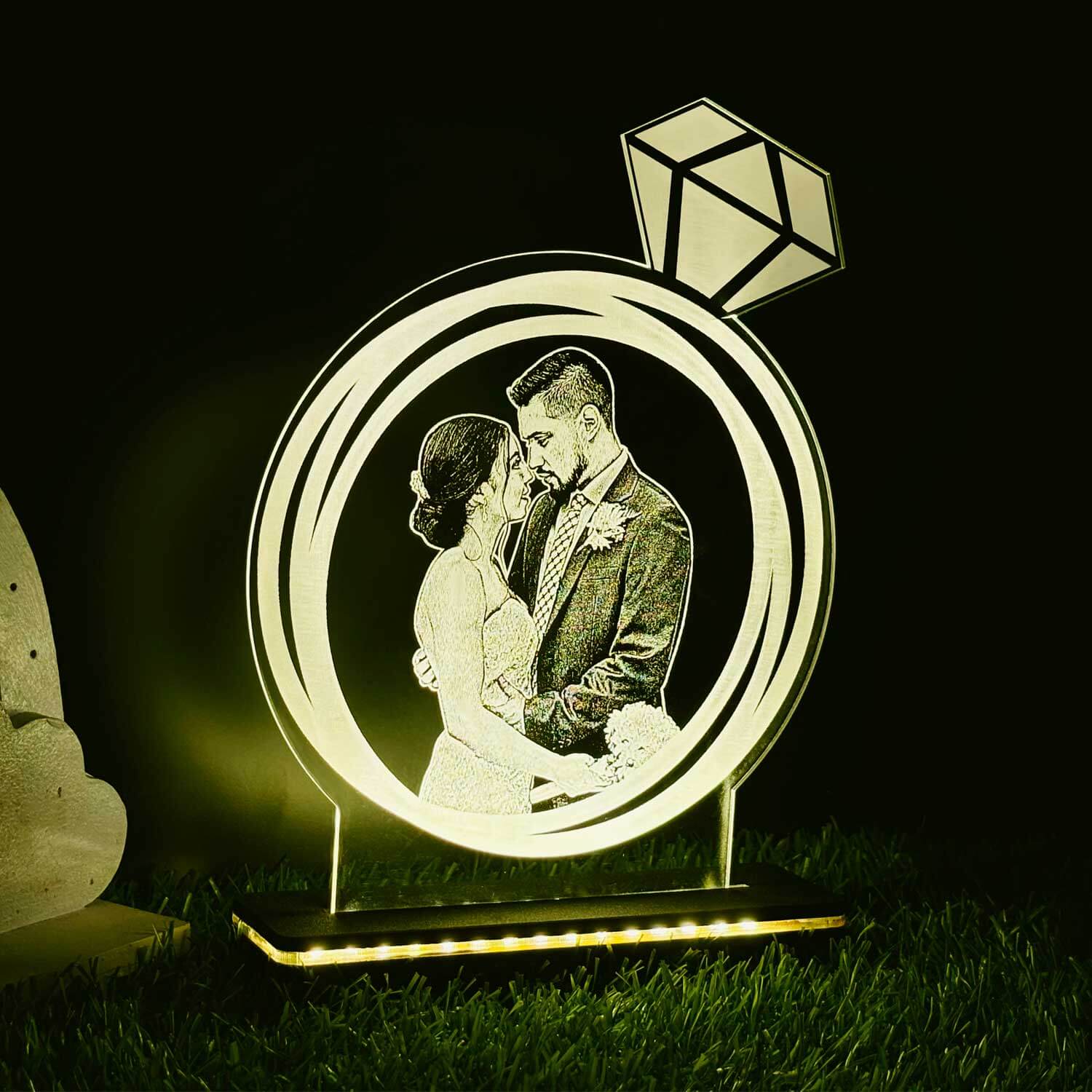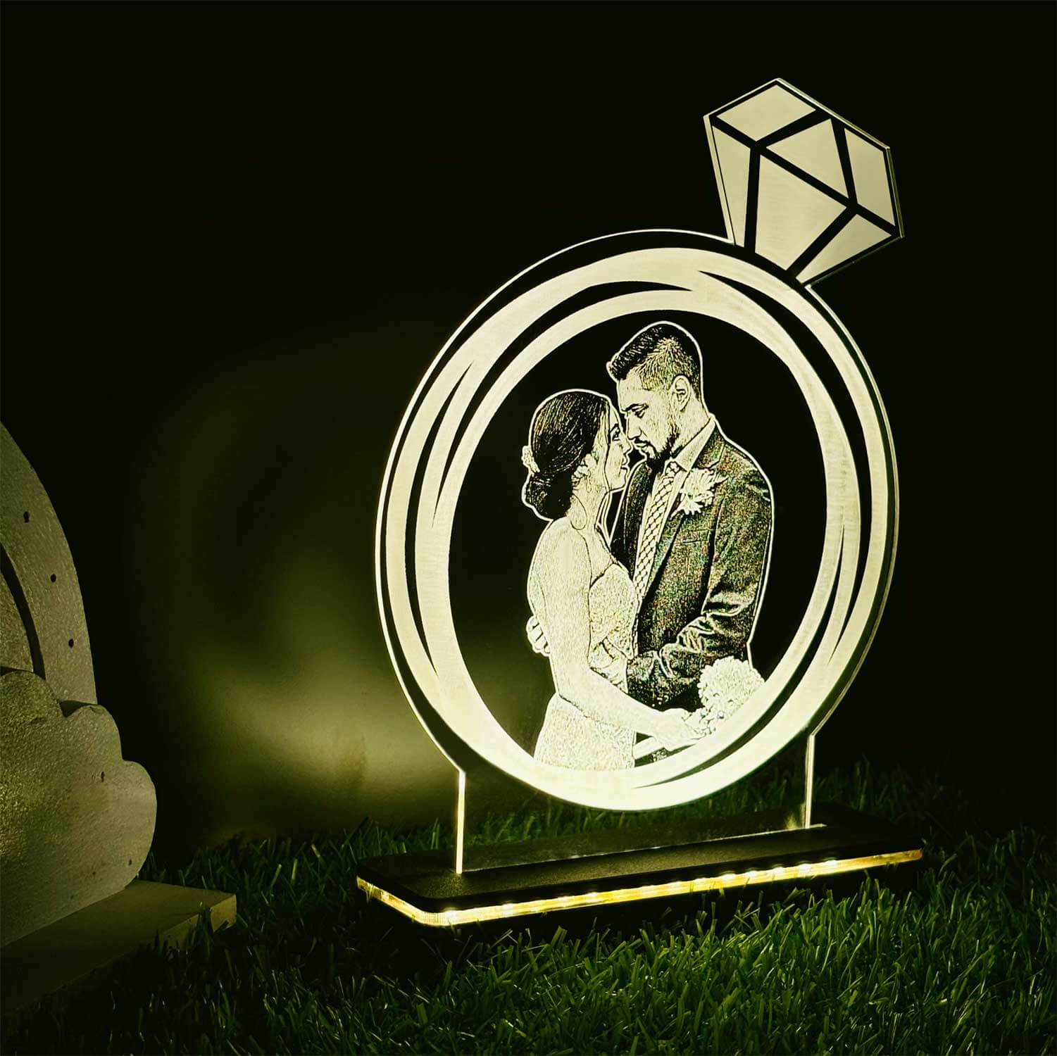 1 review for Personalized LED Illusion Lamp Diamond Ring with Wood Light Stand