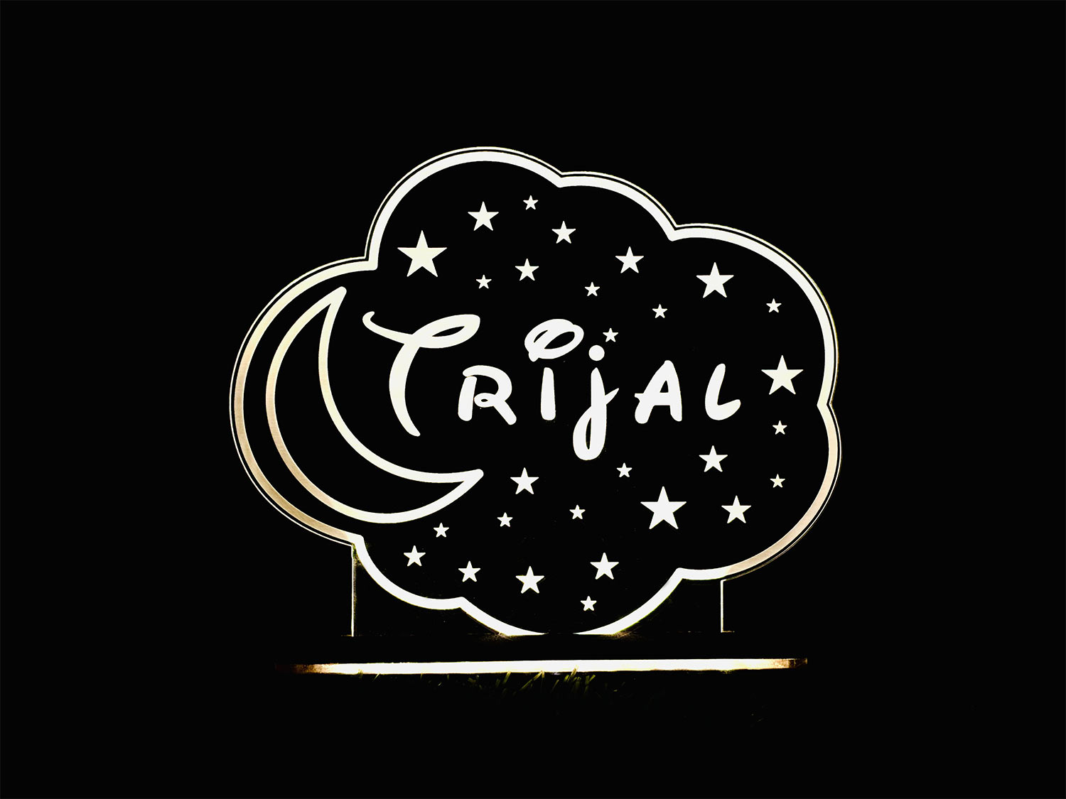 This is a gorgeous Personalized LED Name Lamp Moon & Stars with your own engraved Name. This LED frame with LED light stand will make a great bonding gifts for couples, friends, anniversary, birthday frames, customized gifts for kids.