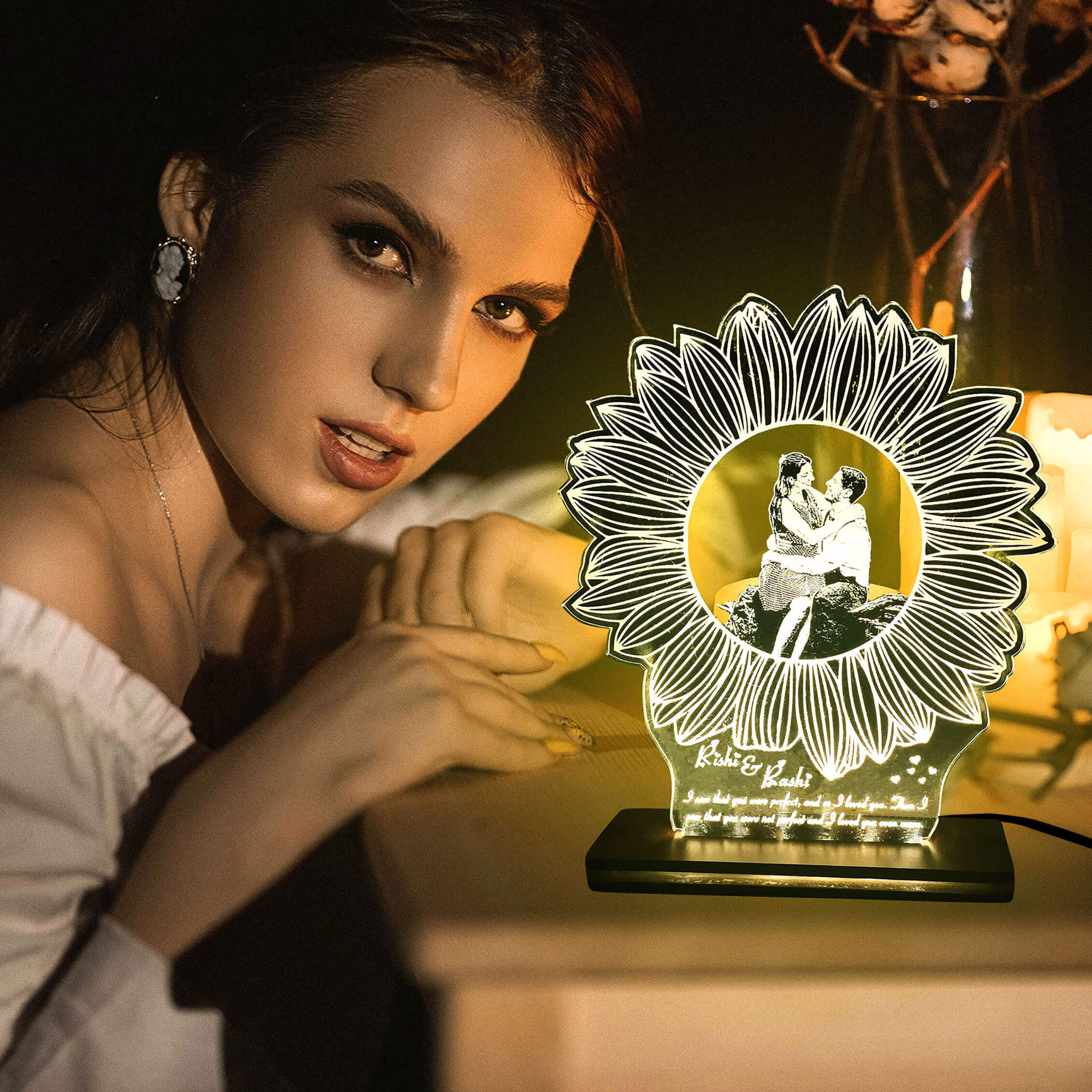 2 reviews for Personalized Flower LED Photo Frame with Wood Light Stand