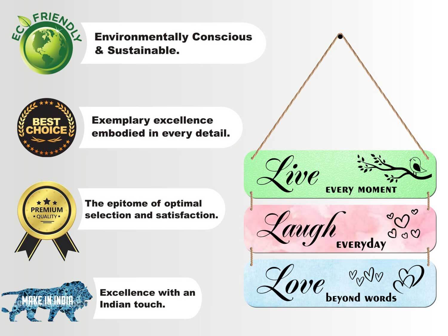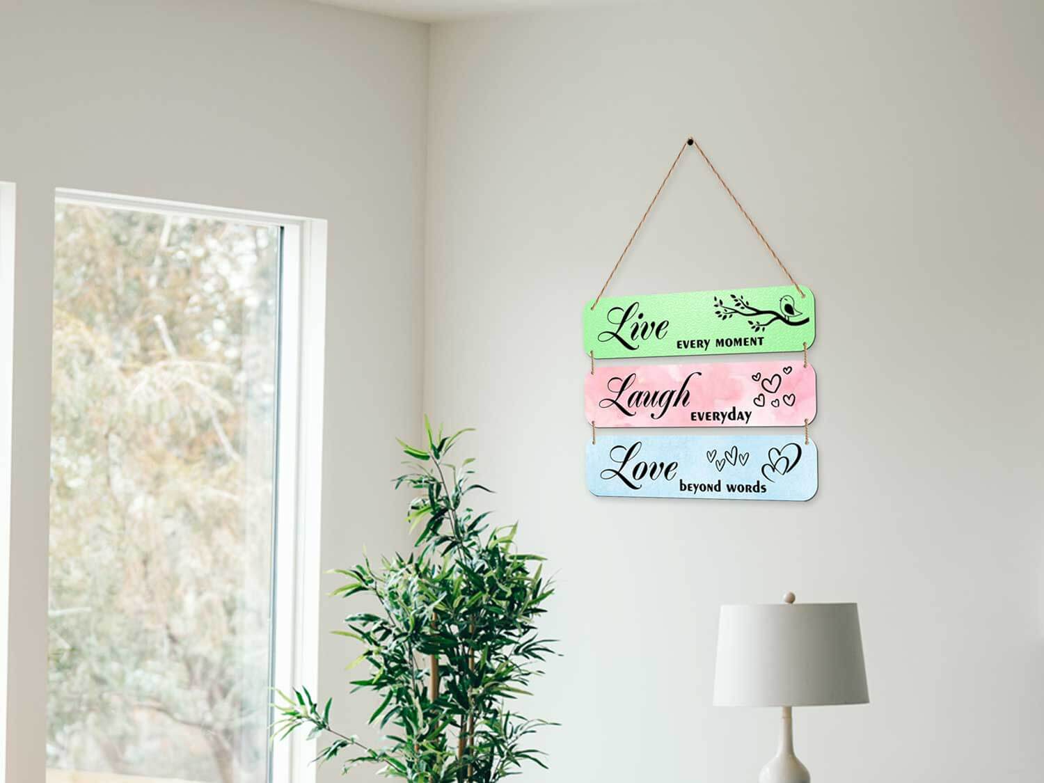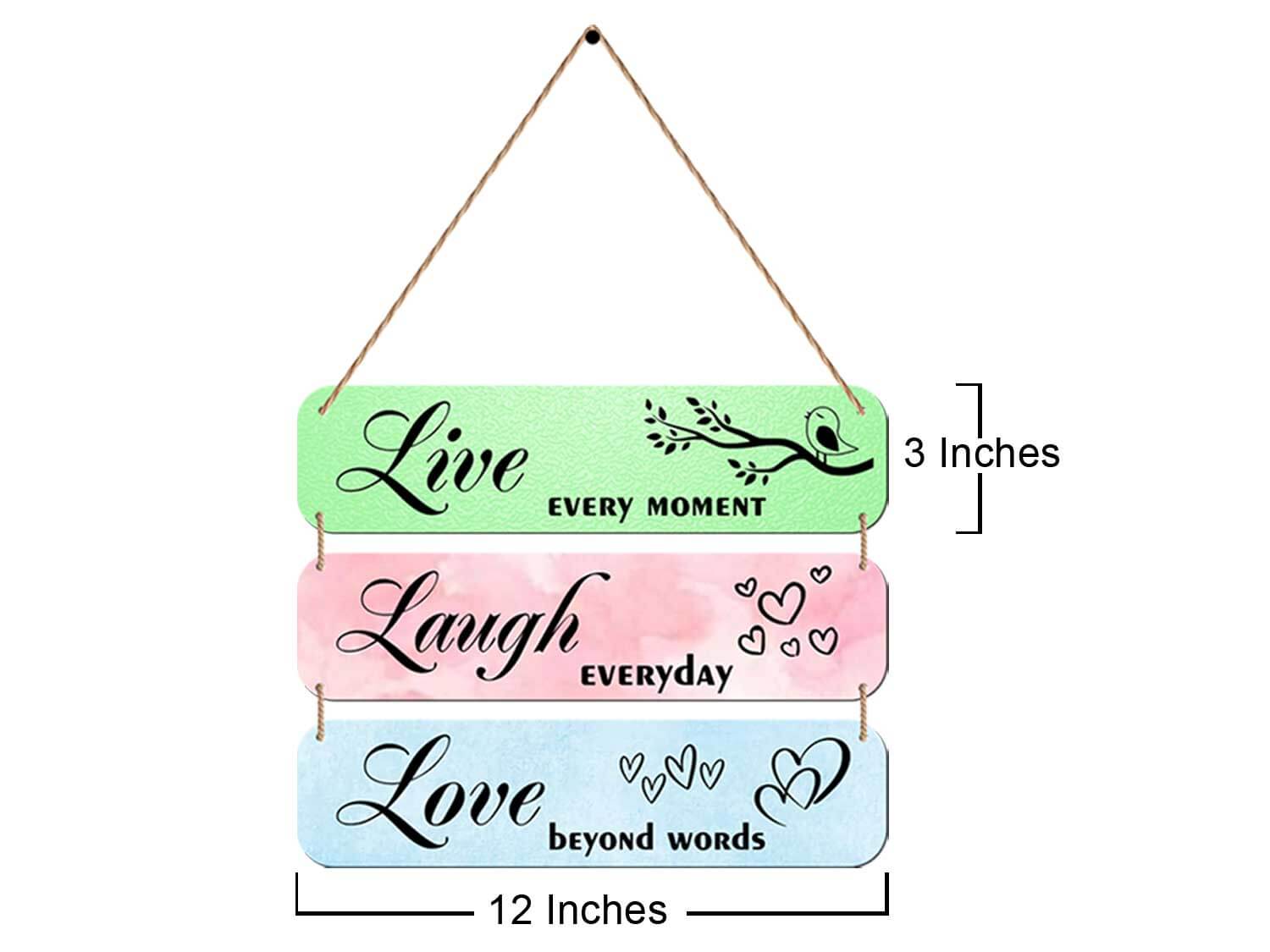Elevate your living space with our exquisite Live Laugh Love Wooden Wall Hanging. Crafted with precision, this 3-piece wall decor set not only adds charm to your home but also spreads positivity and joy.
