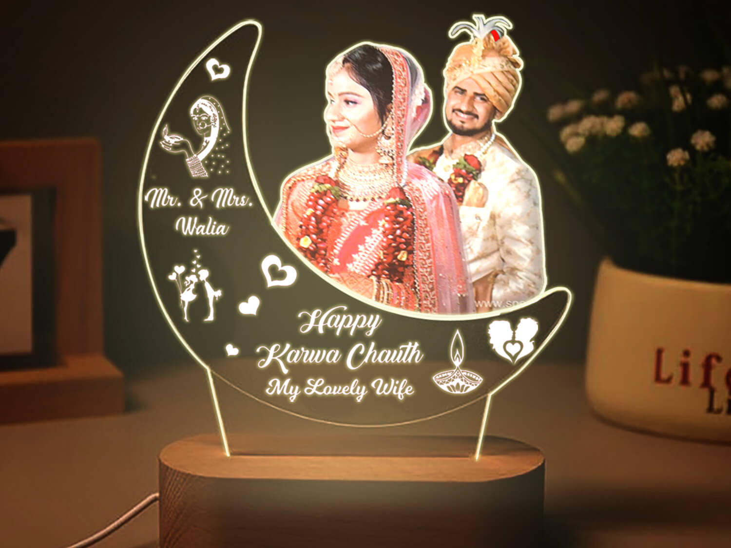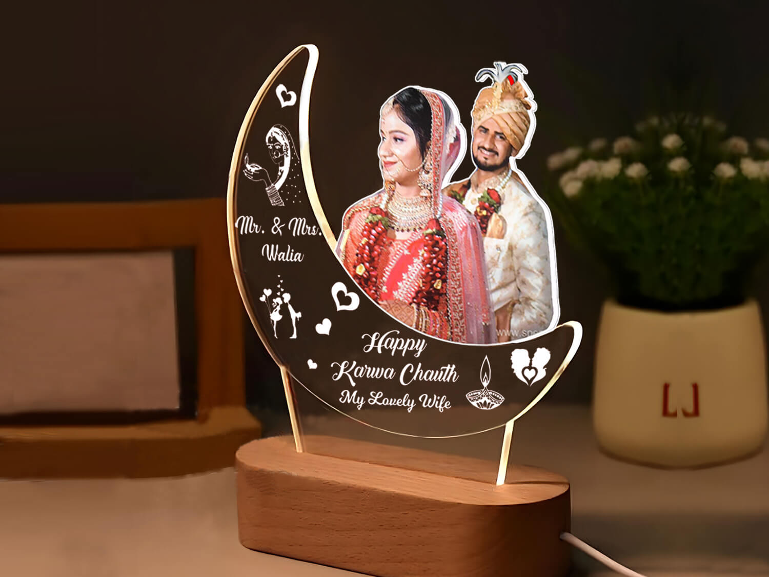 Personalized Moon LED Light Photo Frame Gift for Karwa Chauth
