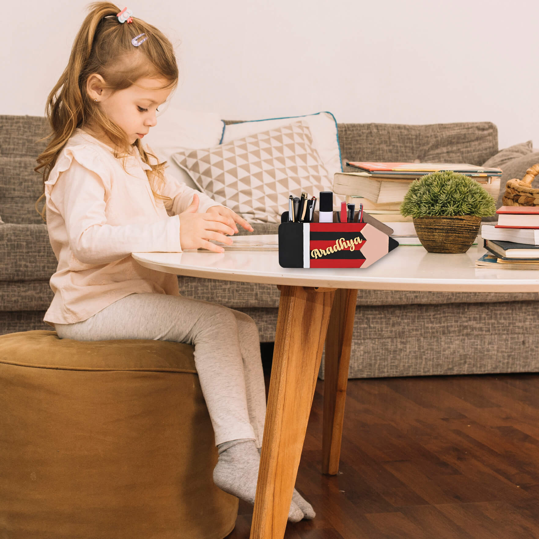 Introducing our Wooden Stationary Organizer – the ultimate solution for decluttering your workspace and keeping your kids stationary items neatly arranged. Crafted in a charming pencil shape, this stylish stationary storage box combines functionality with aesthetics to enhance any study table, office stationary desk, or workstation.