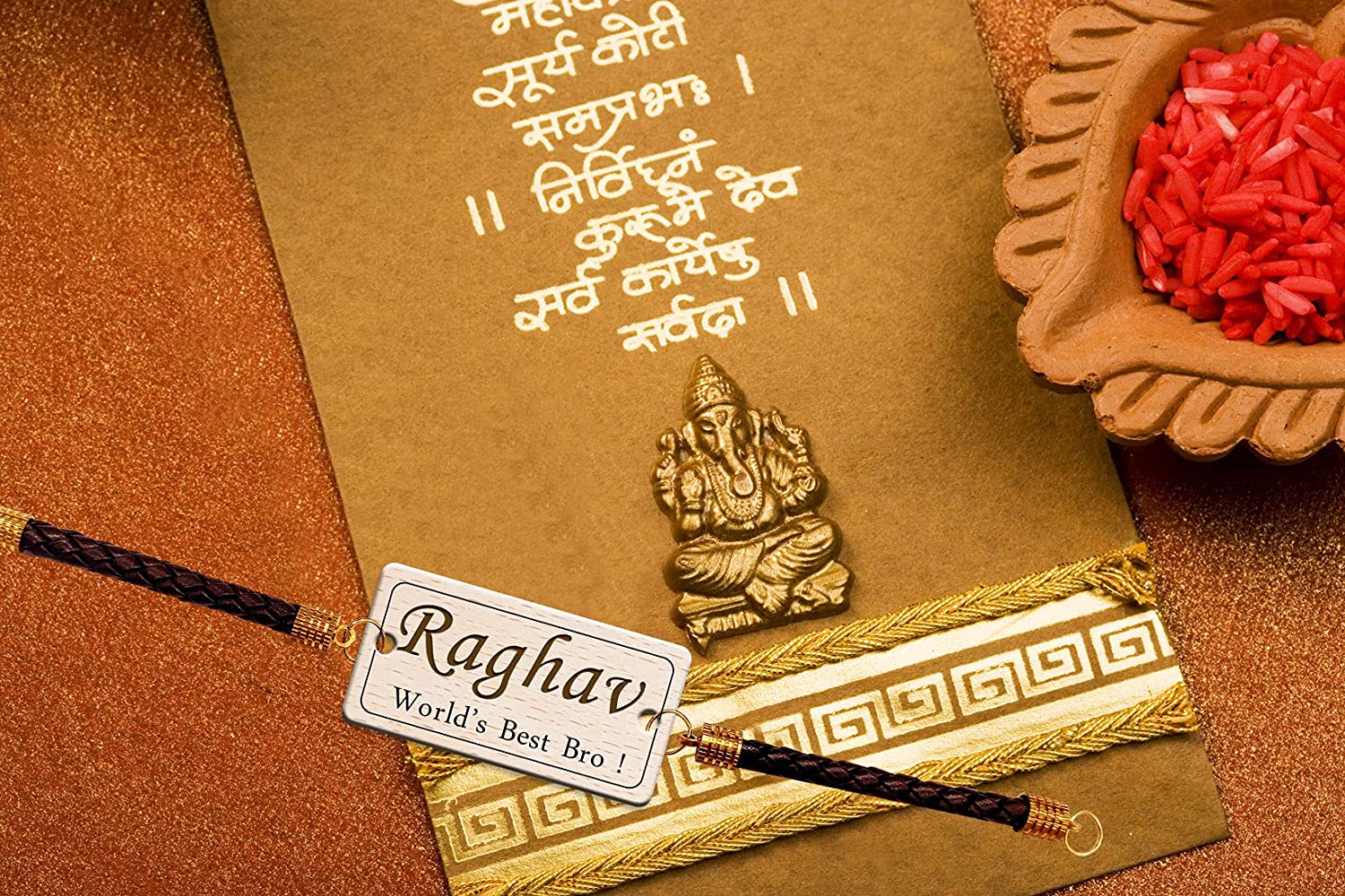 Personalized Bracelet Name Incredible Rakhi for Men with Roli Chawal
