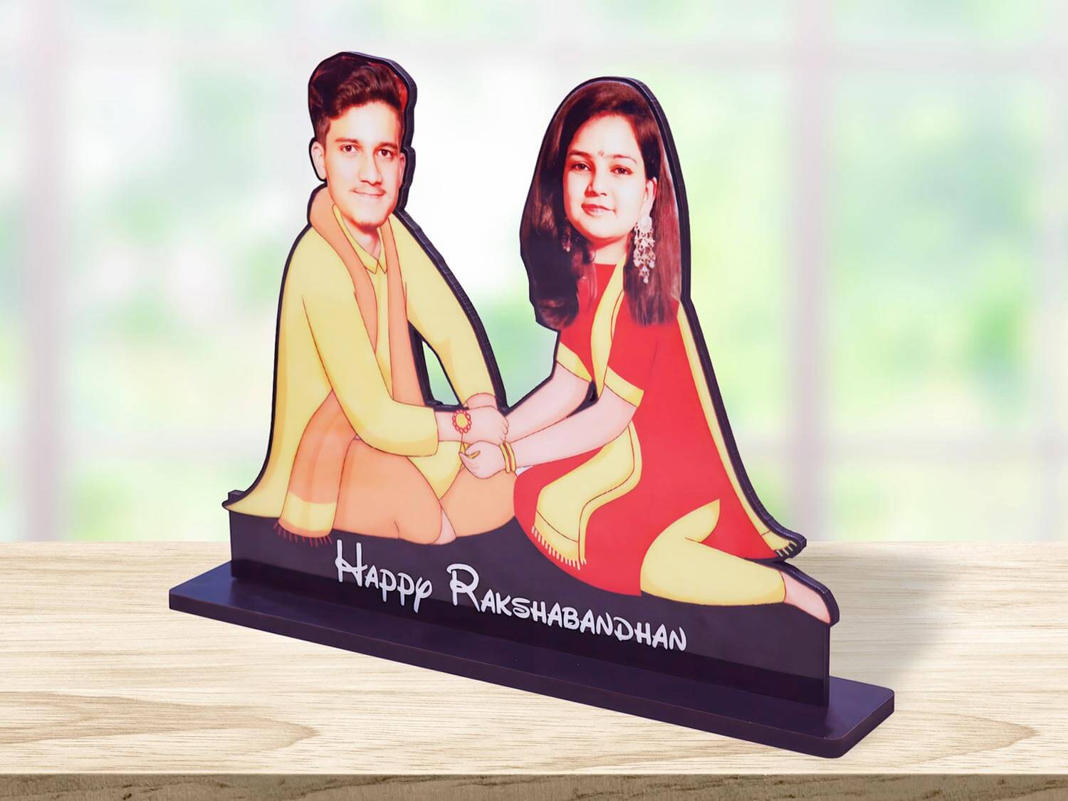 Celebrate Raksha Bandhan with a unique and vibrant touch! Our Personalized Raksha Bandhan Caricature is a delightful 3D colorful caricature gift that captures the essence of sibling love. Customize this lively 3d caricature with your favorite photo and create a heartwarming rakhi gift that your brother or sister will cherish forever. The size of this Caricature is 8 x 6.5 Inches.