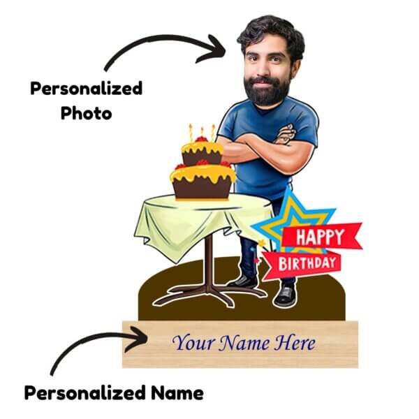 Personalized Caricature Happy Birthday Gift for Man with Custom Name