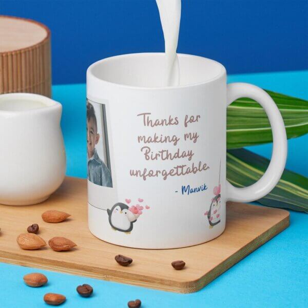 Make your child’s birthday extra special with our Birthday Return Personalized Coffee Mug! A creative and useful return gift, this mug is personalized with a photo of the birthday child.