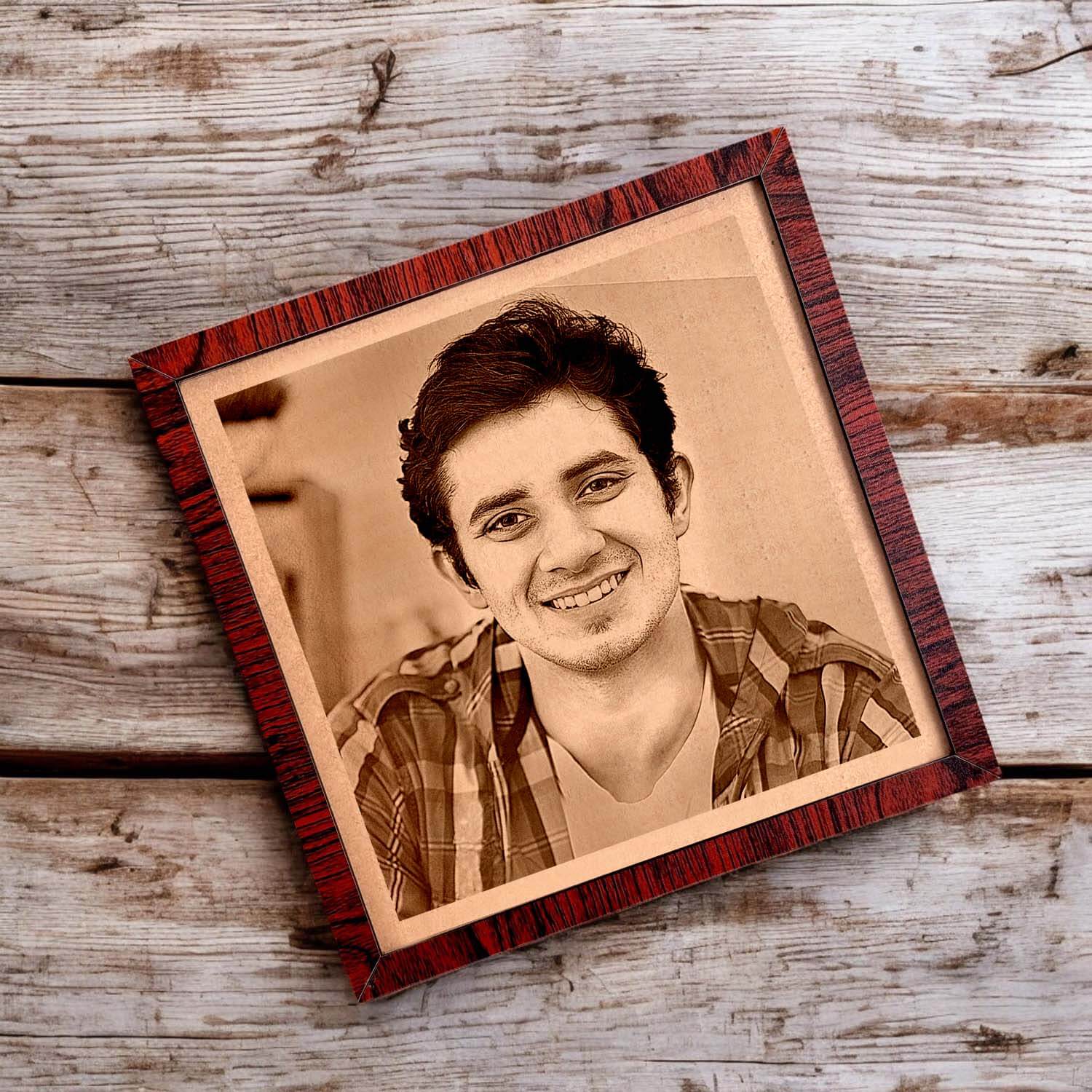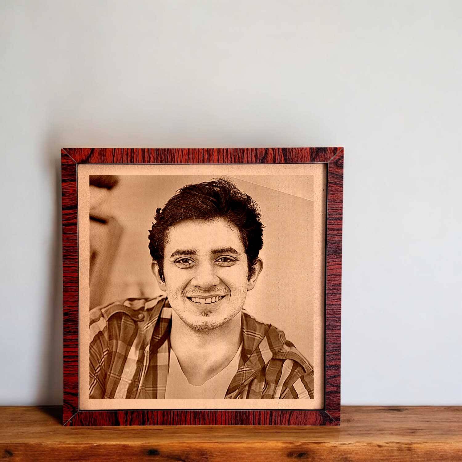 Transform your favorite photo into a timeless piece of art with our Personalized Engraved Photo Frame. This beautifully crafted wooden frame features a detailed engraving of your chosen picture, making it a unique and heartfelt gift for any special occasion.