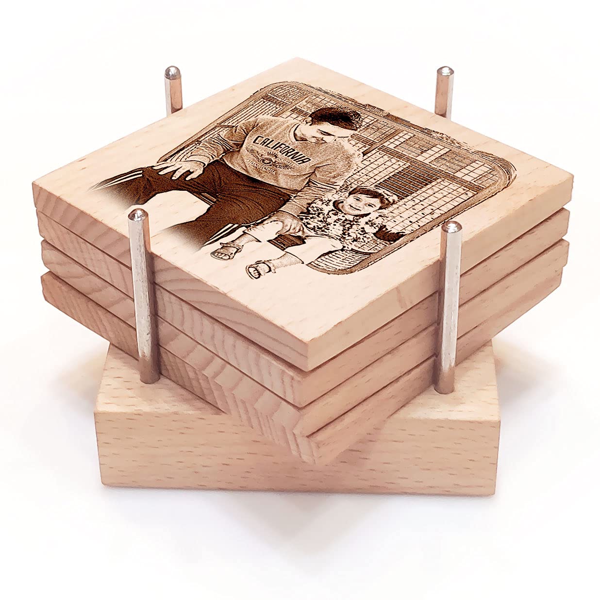 Incredible Gifts Presents Personalized Engraved Wooden Photo Coasters for Cups