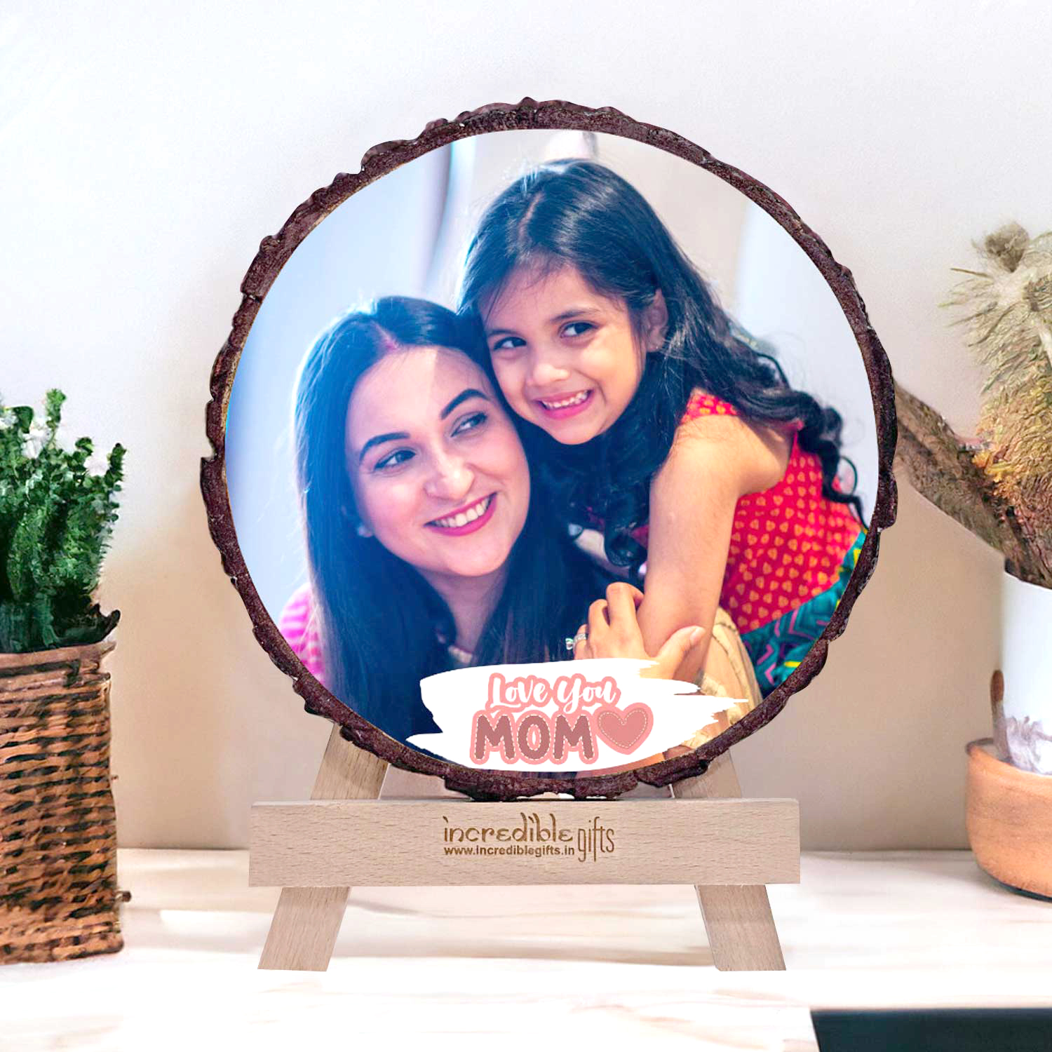 Love You Mom Wooden Round Photo Frame Personalized Gift For Mom