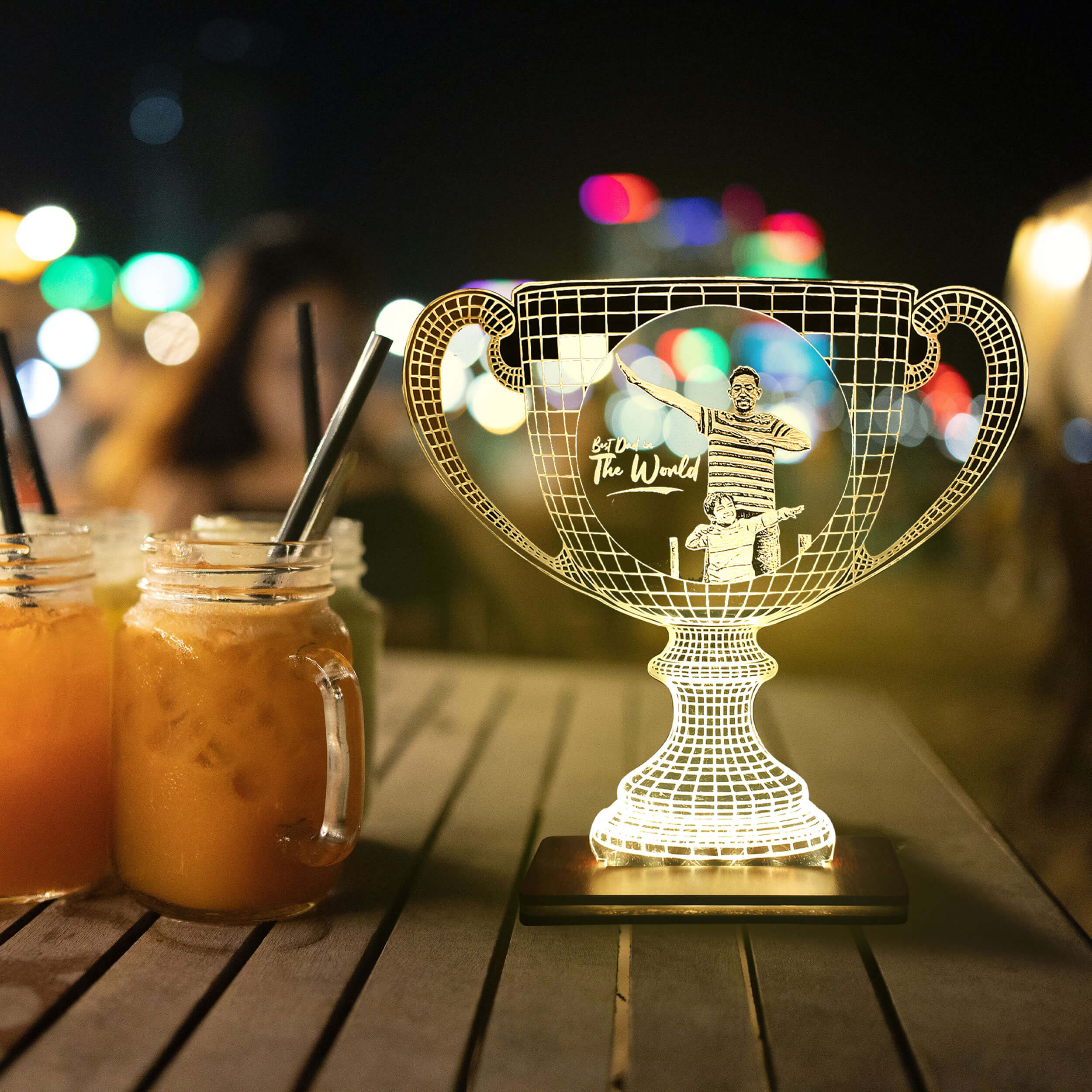 Personalized LED Photo Frame Trophy with Wood Light Stand