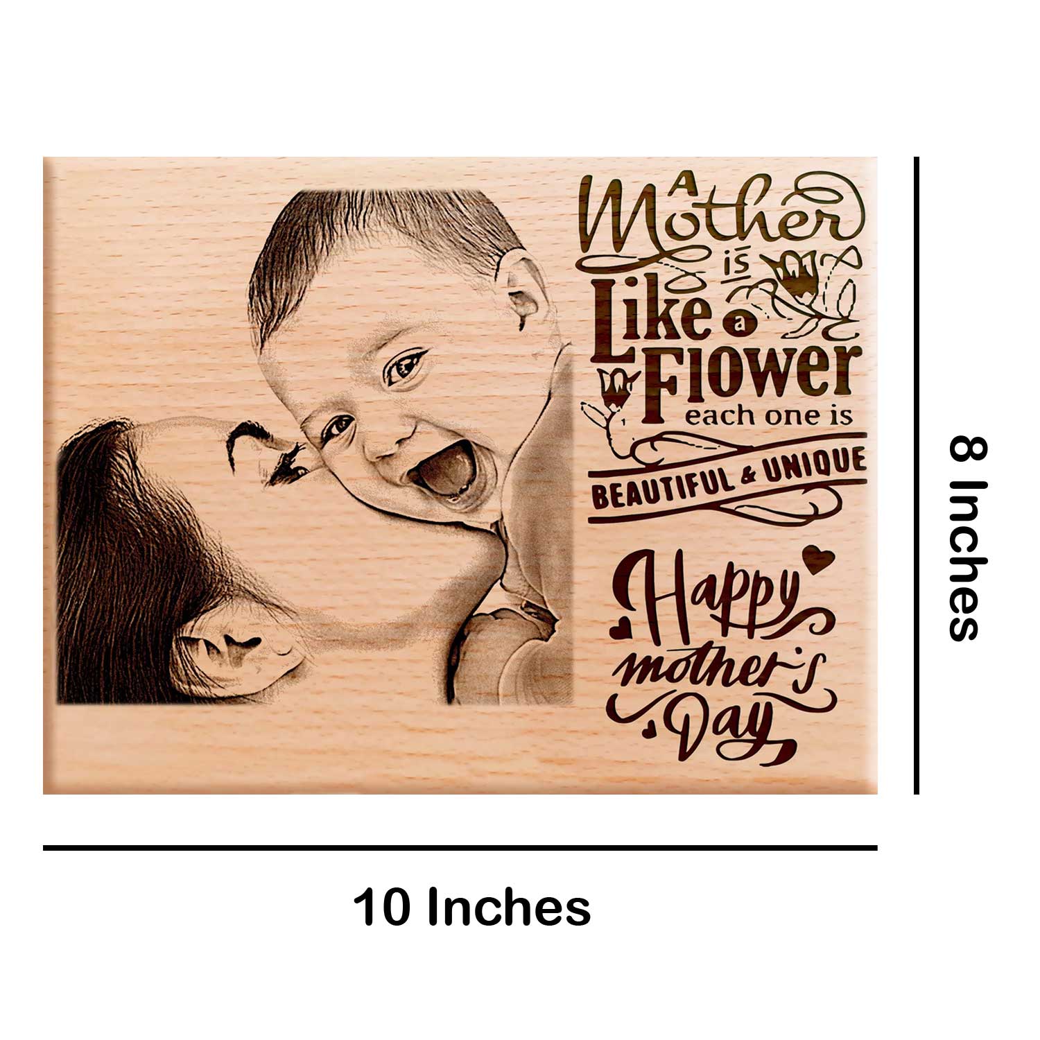 Surprise Mom with an unforgettable gift this Mother’s Day with our beautifully crafted Mothers Day Photo Frame. Crafted from premium quality wood, this mothers day frame is designed to hold cherished memories close, adding a personalized touch to every room. Our Mothers Day Photo Frame measures 10×8 inches, providing ample space to showcase your favorite moments with Mom. Whether it’s a candid family snapshot or a precious mother-child portrait, this happy mothers day photo frame is the perfect canvas to encapsulate your love.