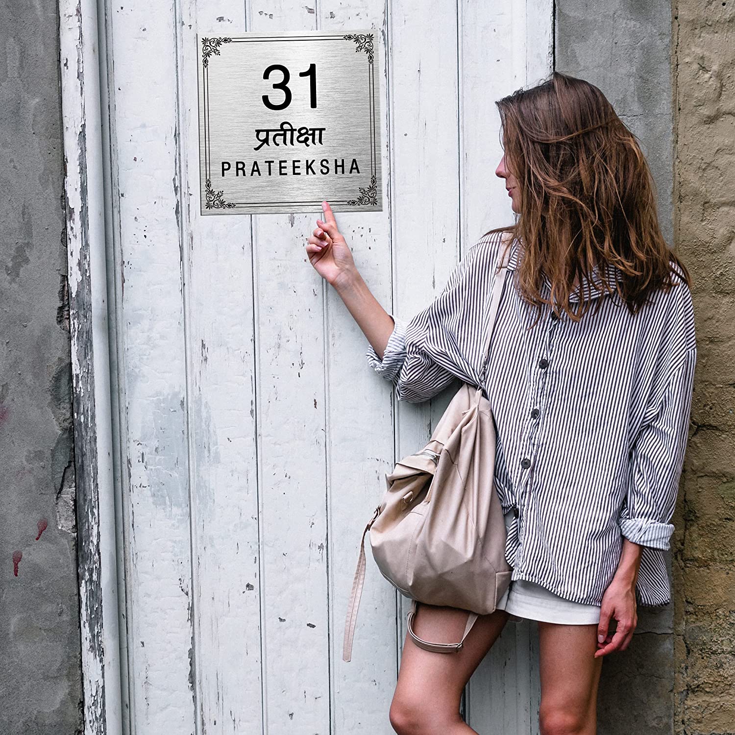 Name Plate for Home Entrance – This silver metal looking ABS plastic name plate is a great option for home entrance name board.