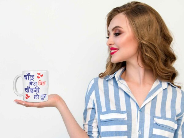 What makes the mug truly special is the personalization. The phrase “Chaand mera dil, Chaandni ho tum” is beautifully printed on one side of this white mug, while the other side can be customized with your wife’s Photo. If your’re looking for quirky gift ideas, personalized cups, wifey mugs, best wife mug or wife coffee cup, here’s the one. It’s a thoughtful touch that transforms this wife coffee mug into a unique and cherished gift.
